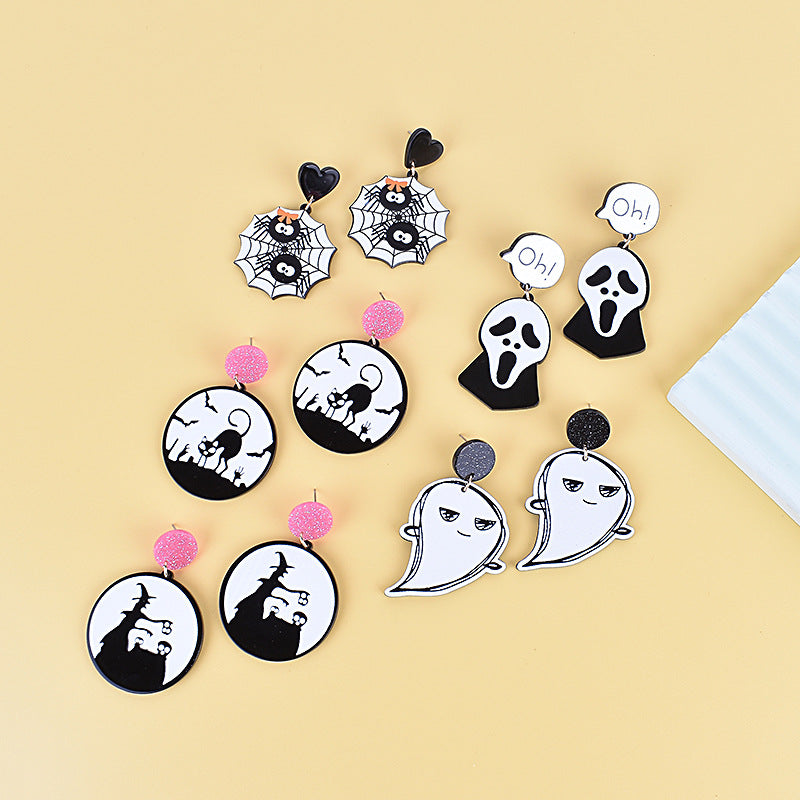 Wholesale Halloween acrylic earrings ghost exclaim ghost cat spider earrings
