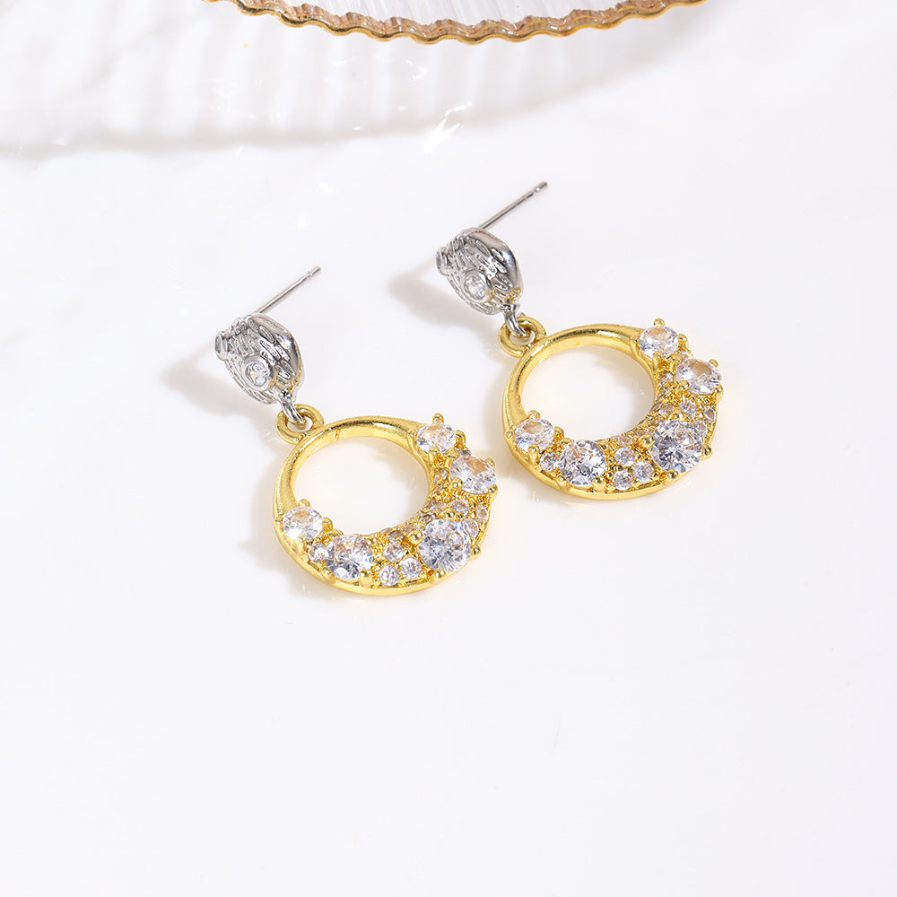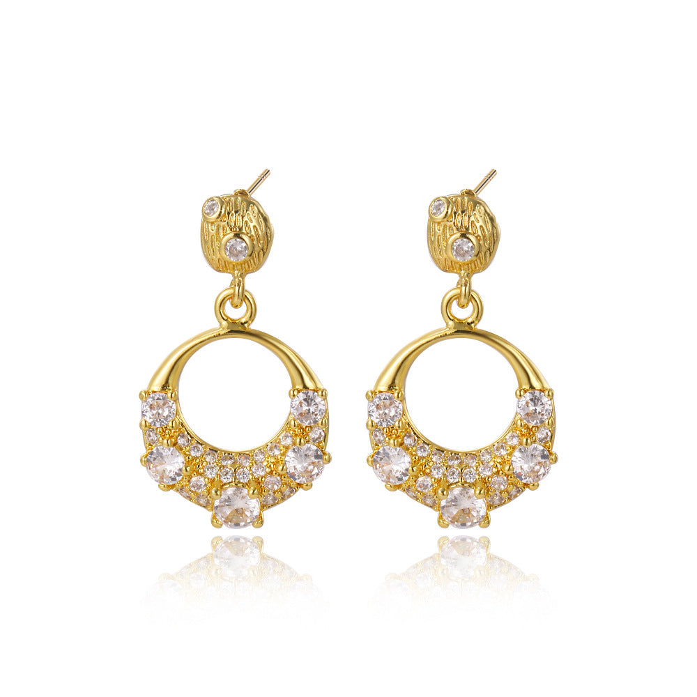 Wholesale Light Luxury Micro-Paved Zircon Round Earrings