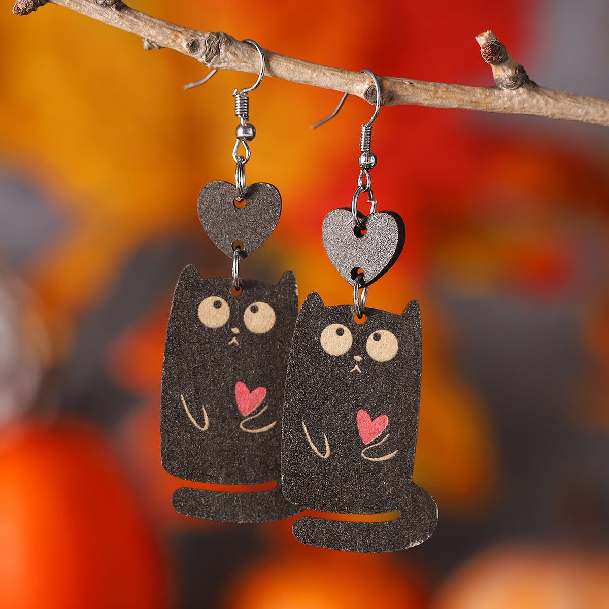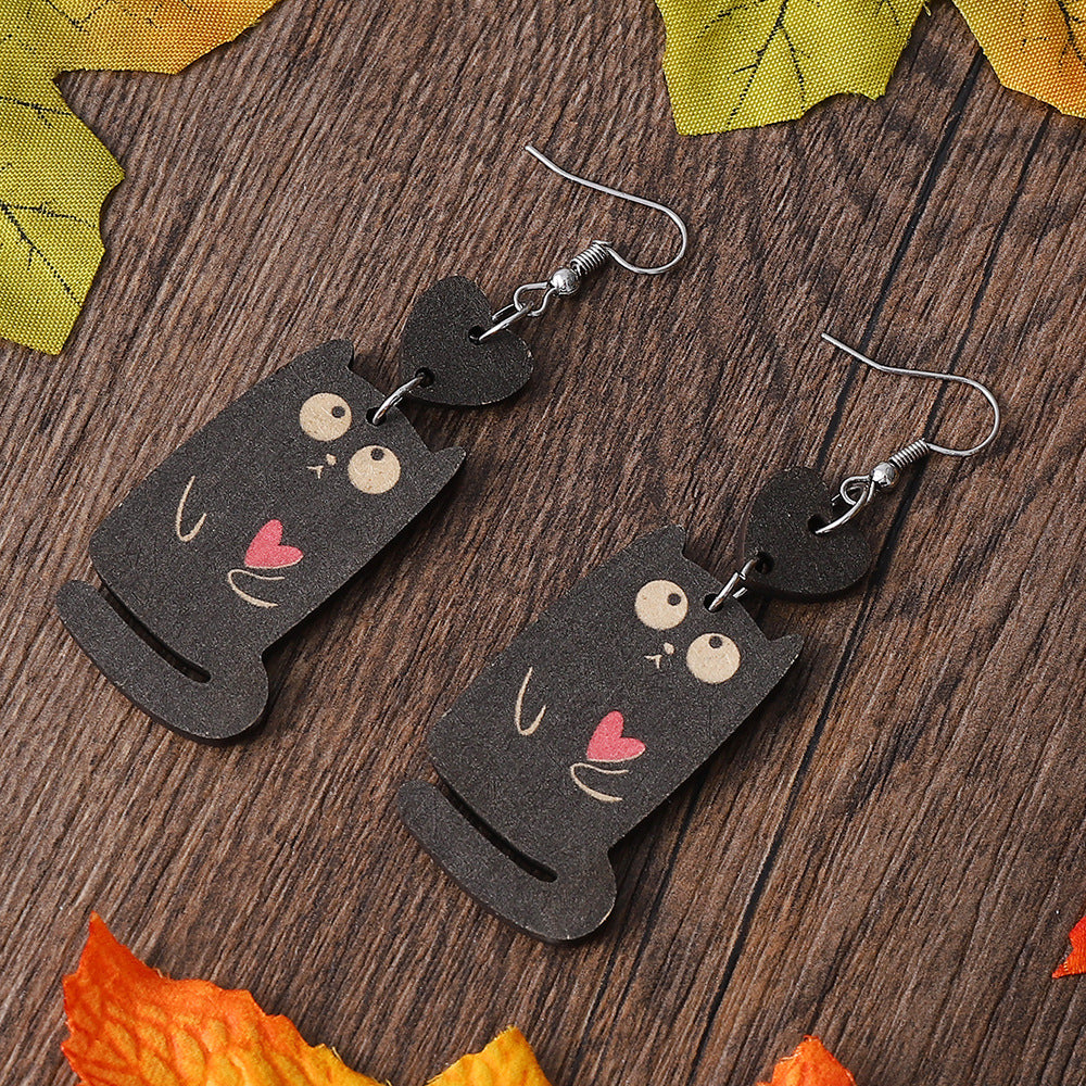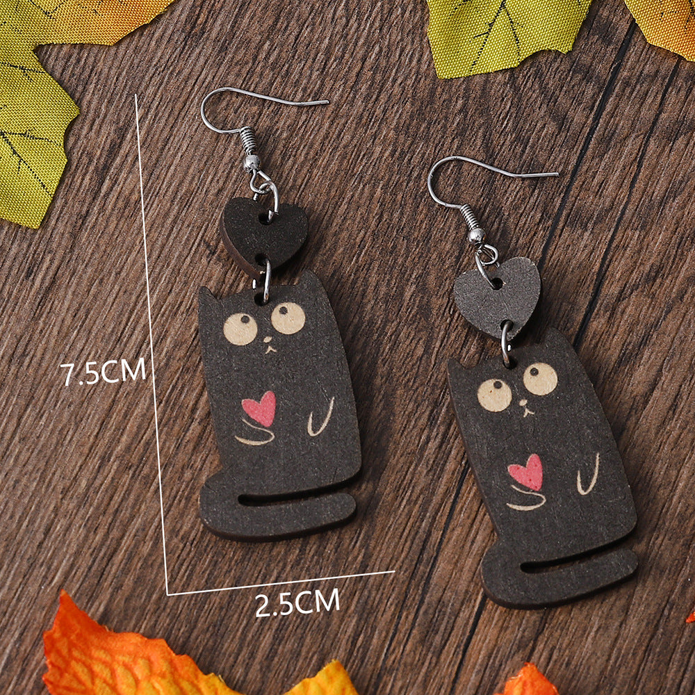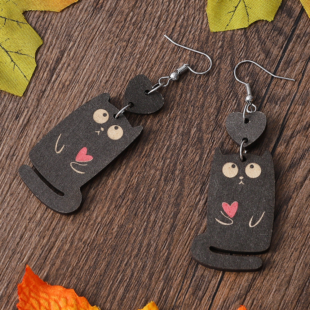 Wholesale Wood love cat earrings