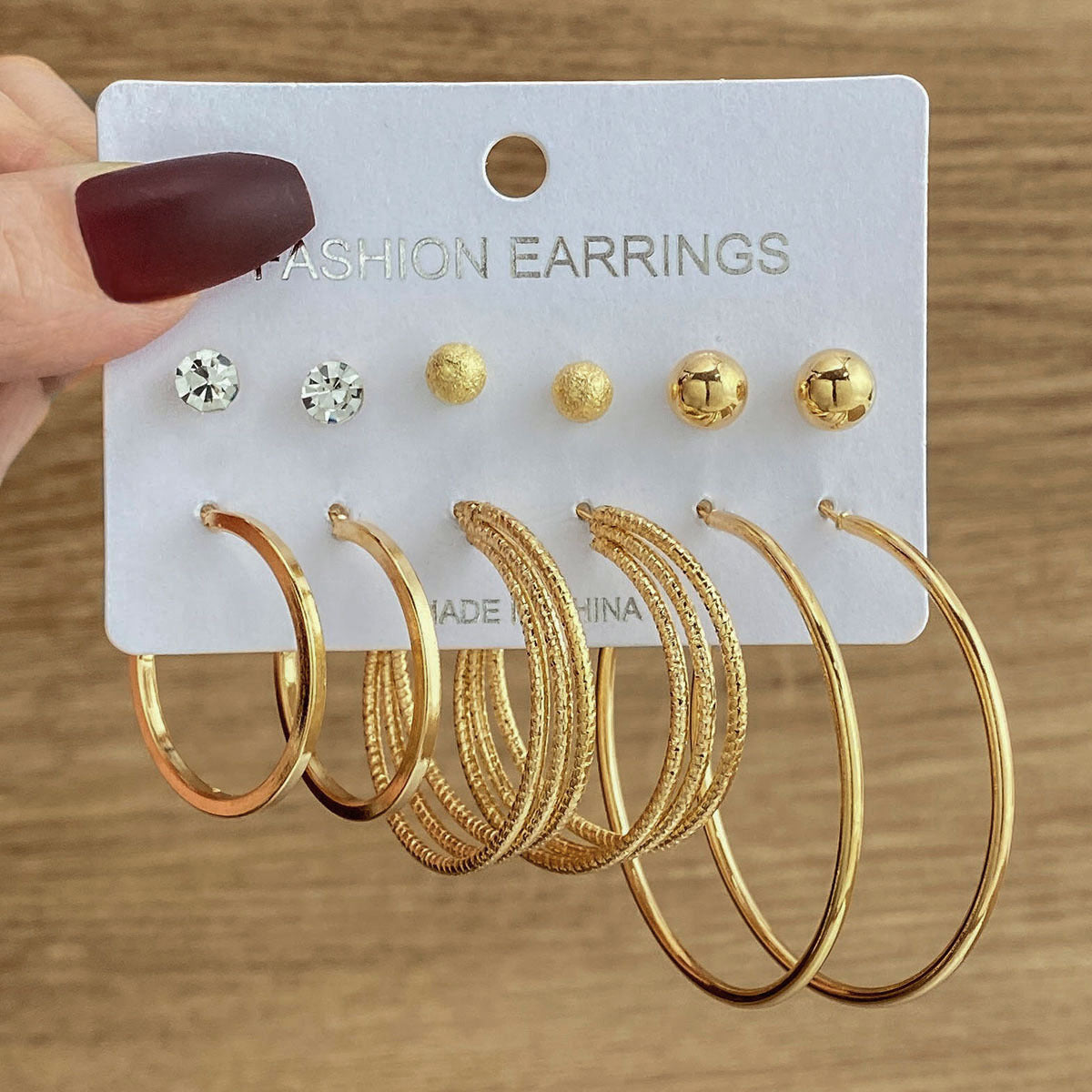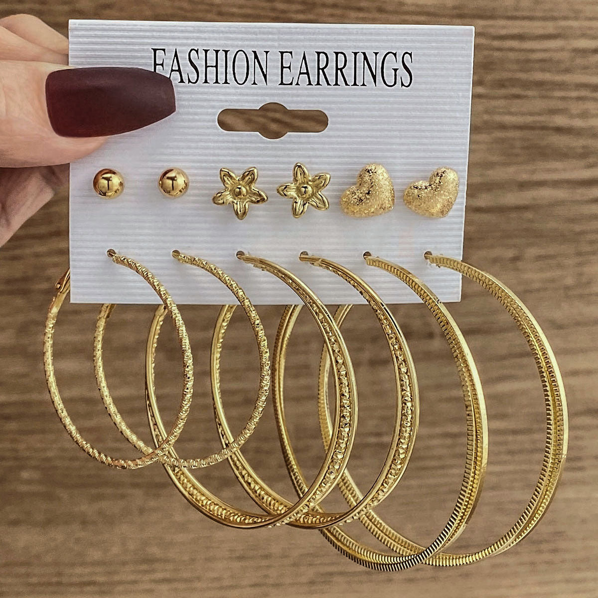 Wholesale Metal colorful geometric round retro earrings six-piece set