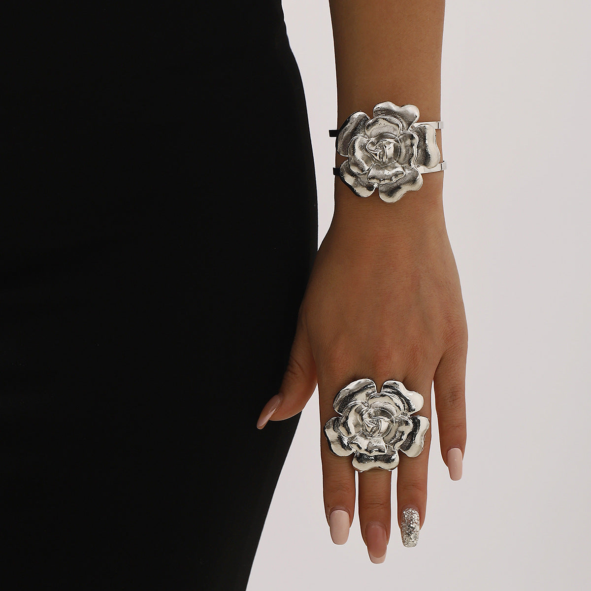 Wholesale Retro Alloy Three-dimensional Flower Pendant Exaggerated Necklace Earrings
