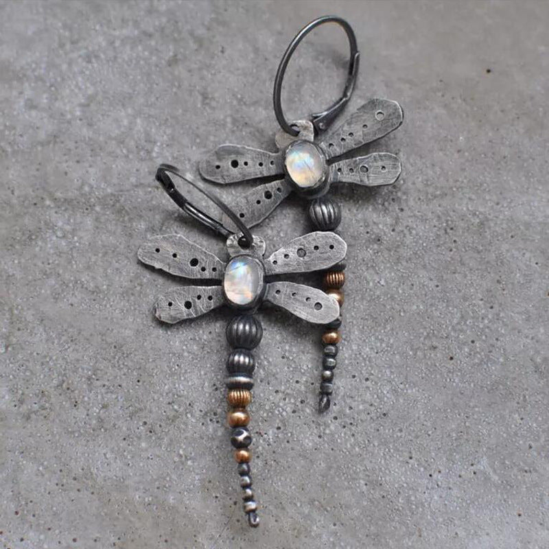 Wholesale retro metal insect moonstone earrings
