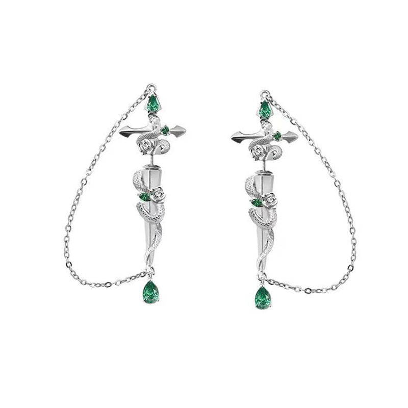 Wholesale Retro Snake Rose Flower Wrapped Piercing Earrings