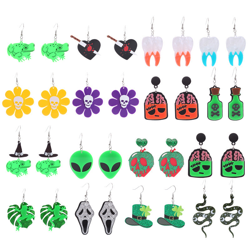 Wholesale Skull Teeth Pumpkin Frog Snake Acrylic Halloween Earrings