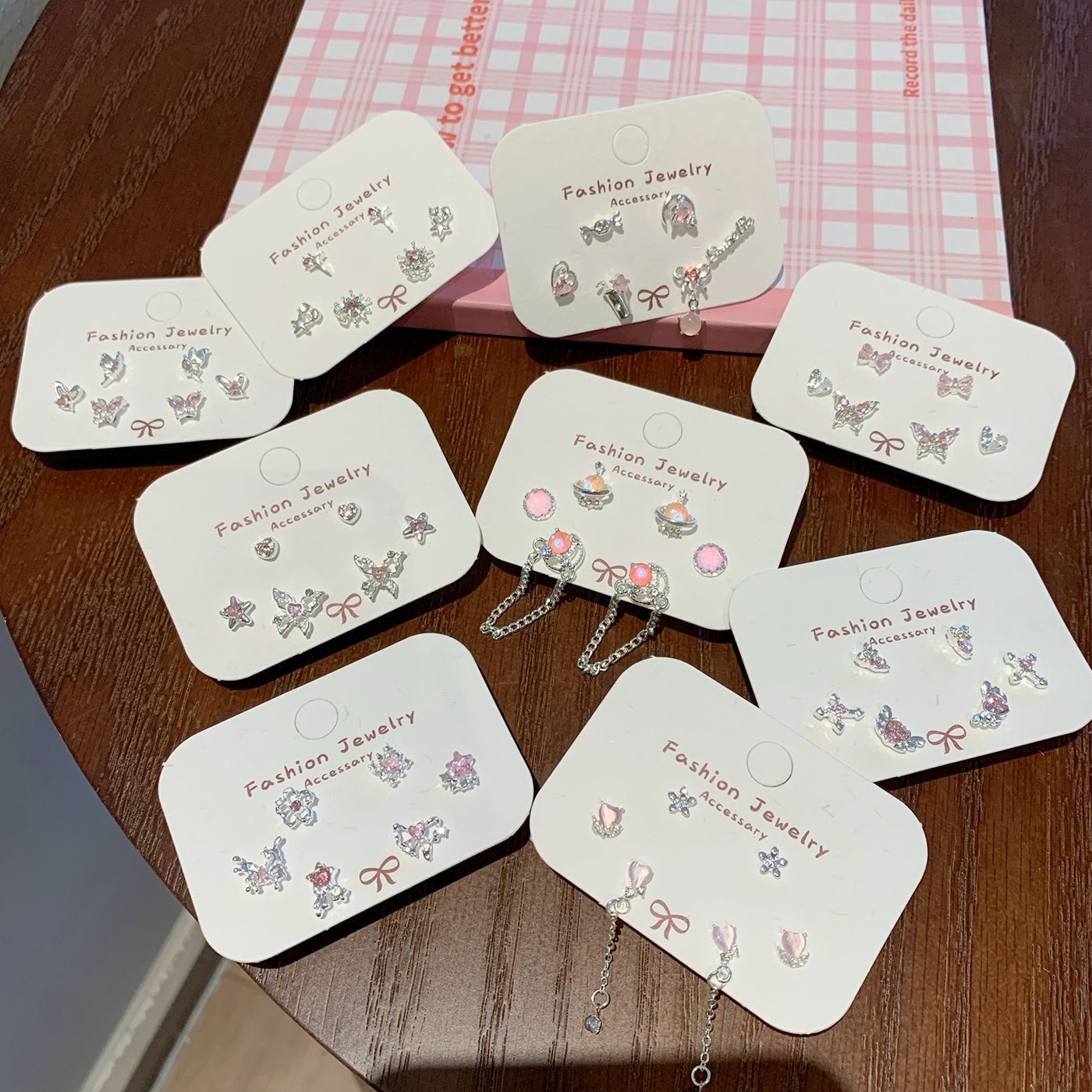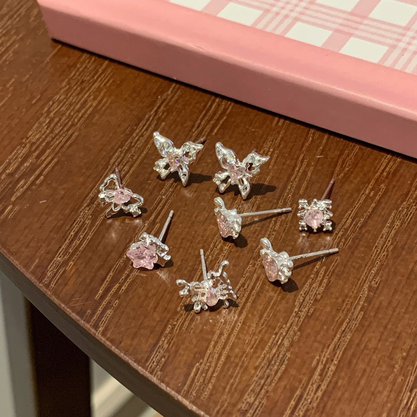 Wholesale Sweet and cool pink zircon butterfly earrings silver needle small daily sparkling all-match earrings
