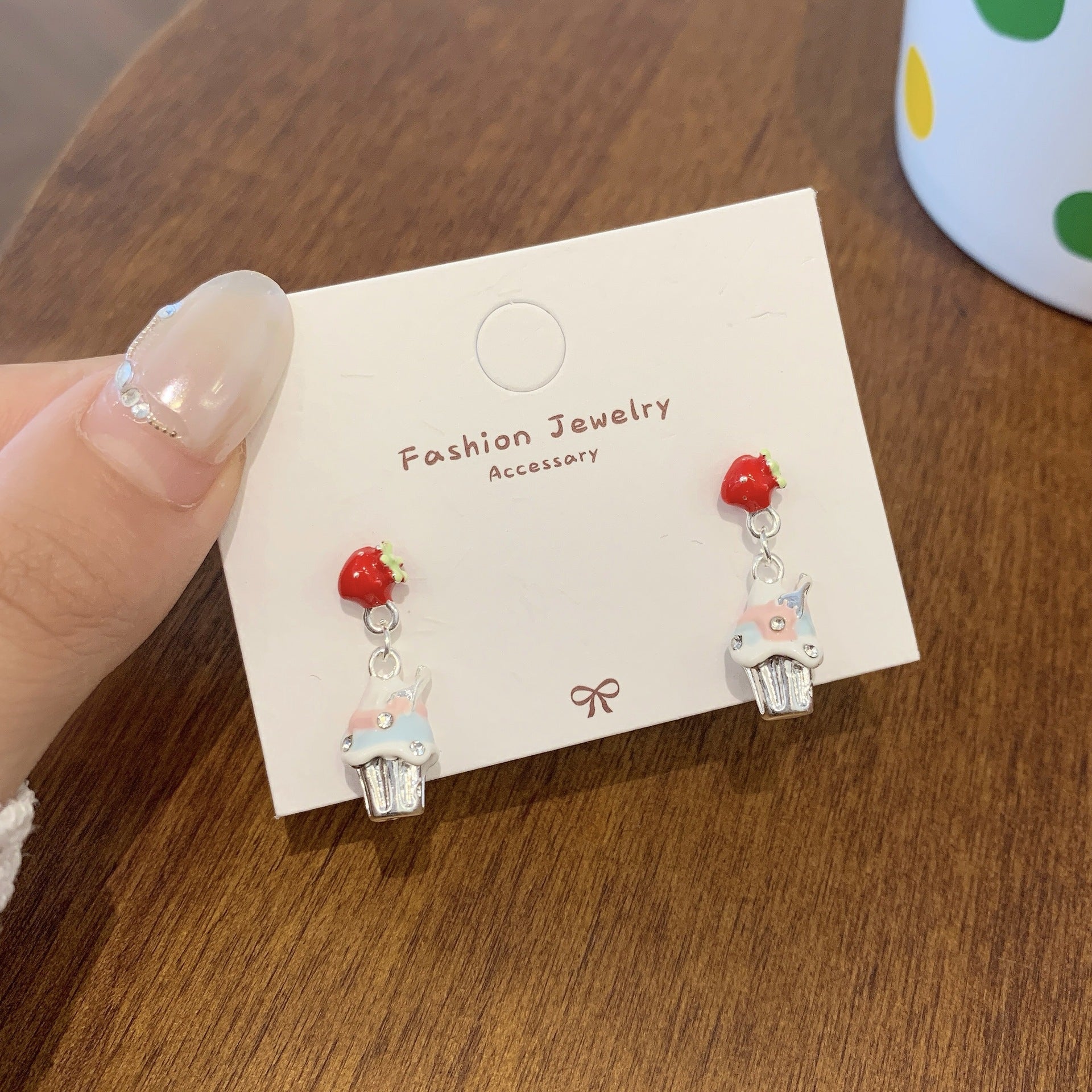 Wholesale Sweet and cute strawberry cake ice cream dessert earrings silver needle light luxury design girly heart earrings
