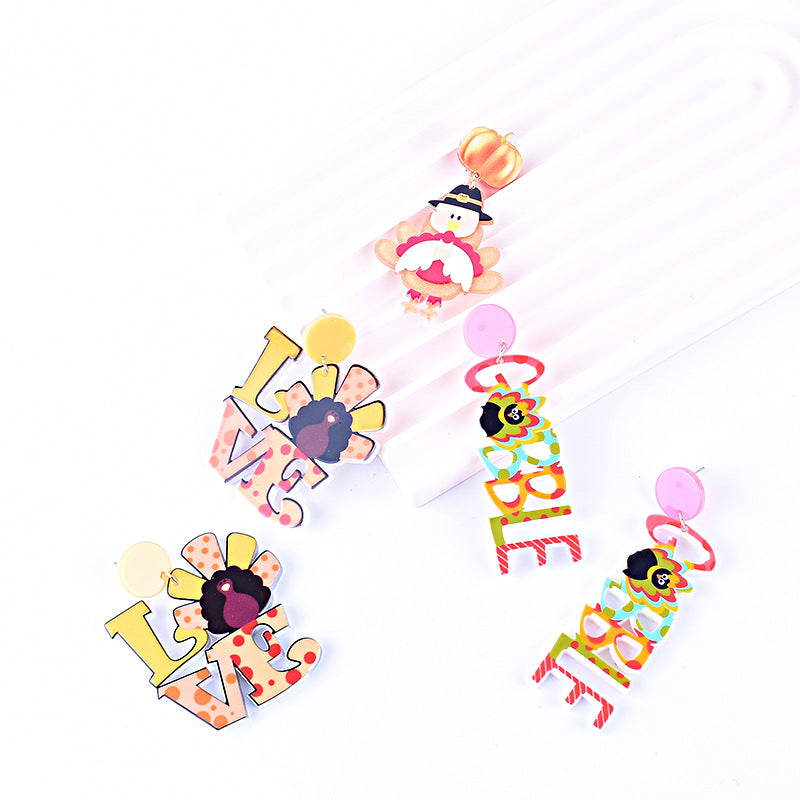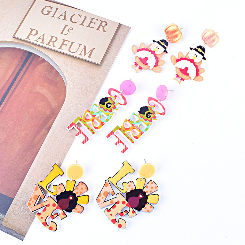 Wholesale Thanksgiving Acrylic earrings Turkey pumpkin maple leaf earrings