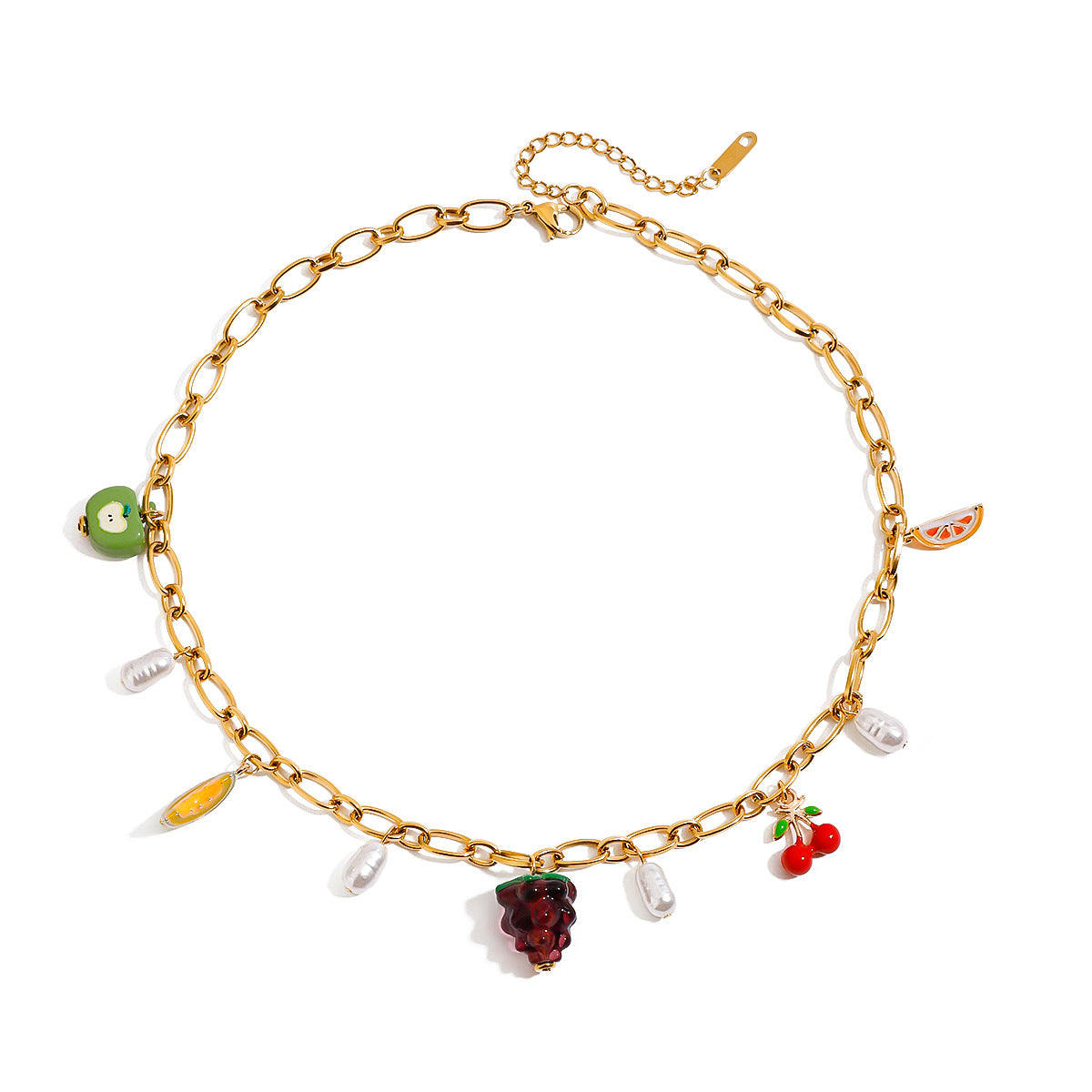 Wholesale 18K gold stainless steel pearl oil drop grape pendant necklace