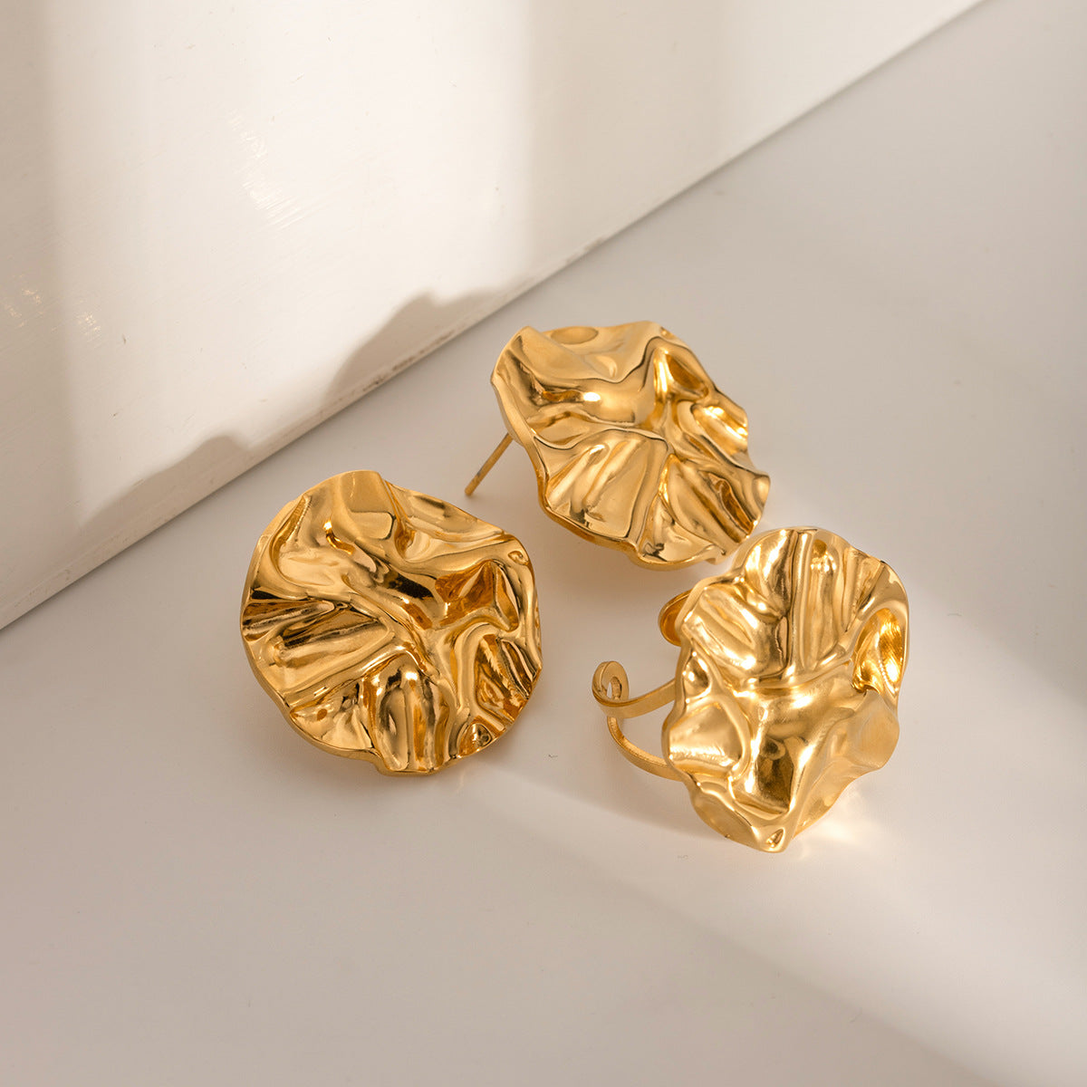 Wholesale 18k gold stainless steel pleated round ring