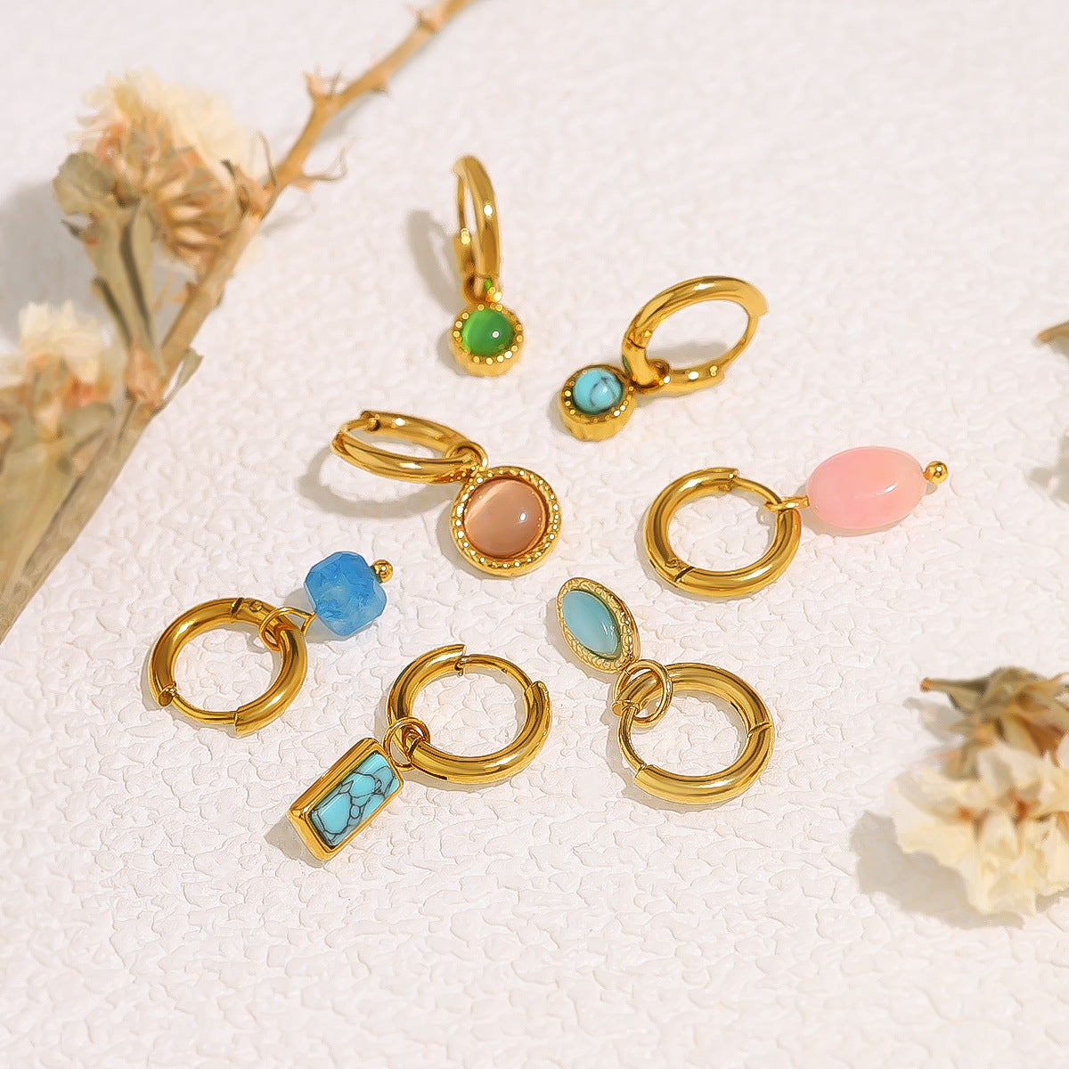 Wholesale 18k gold titanium steel geometric blue turquoise earrings