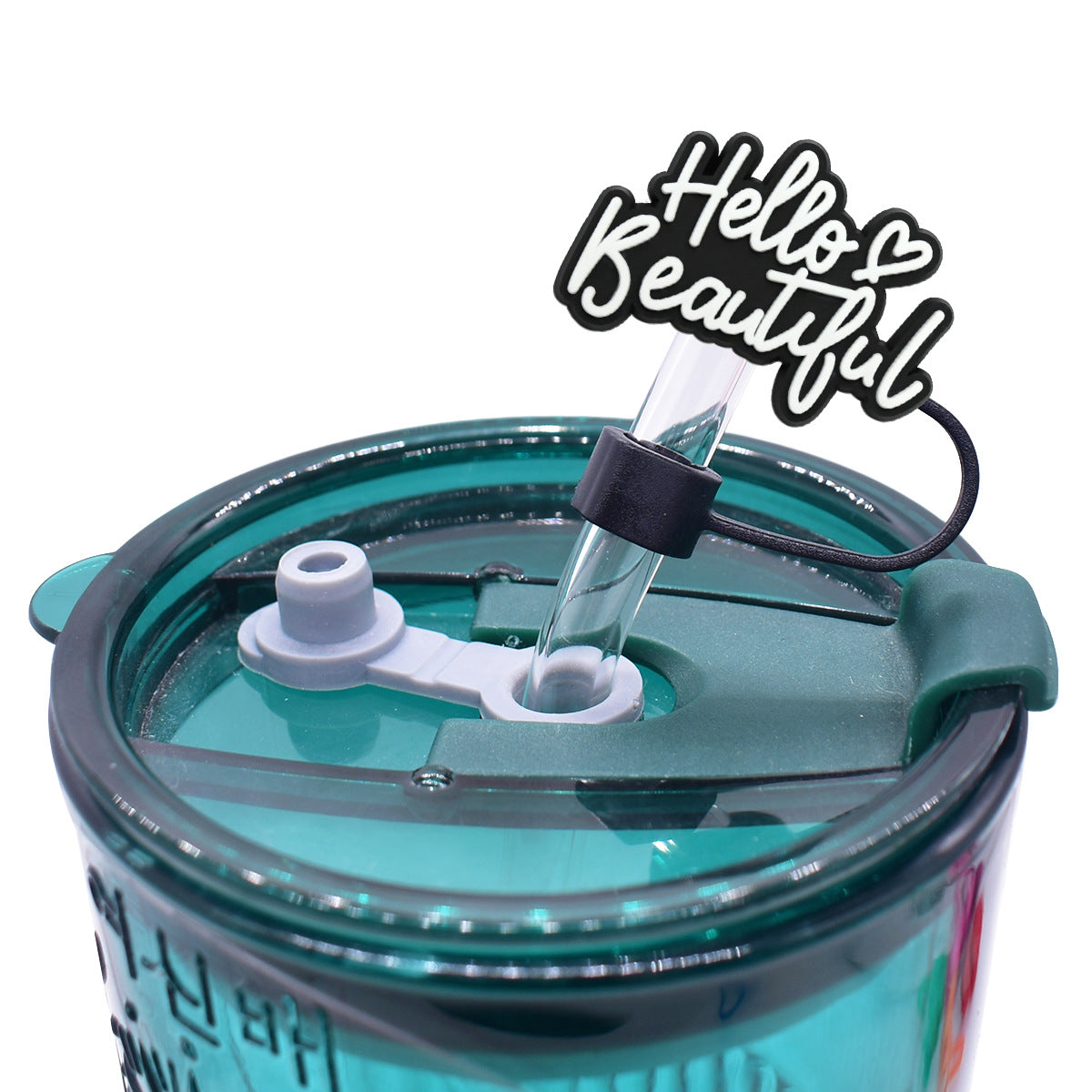 Wholesale Random 100pcs Colorful Phrase 10mm PVC Soft Straw Tube Cap