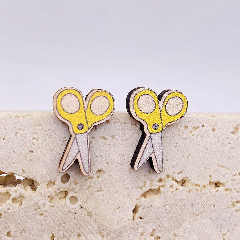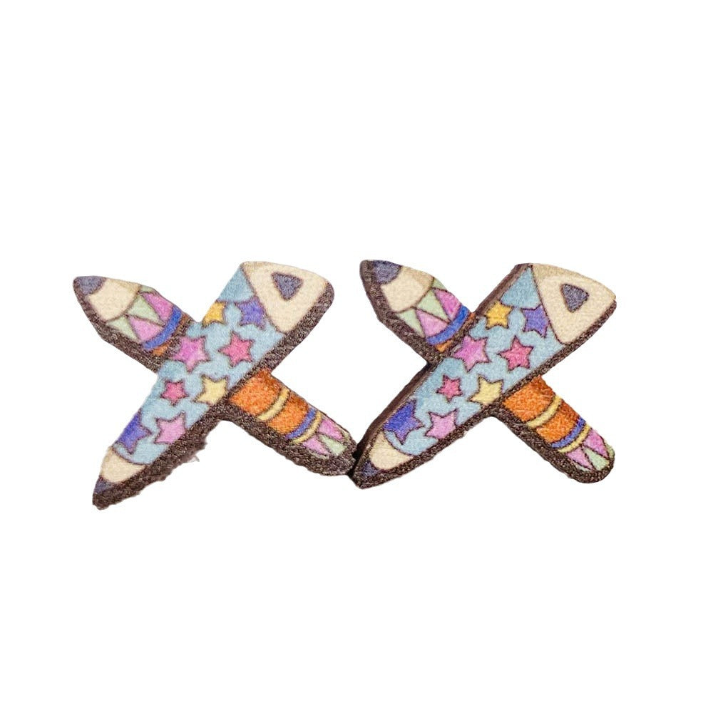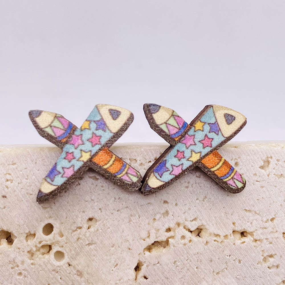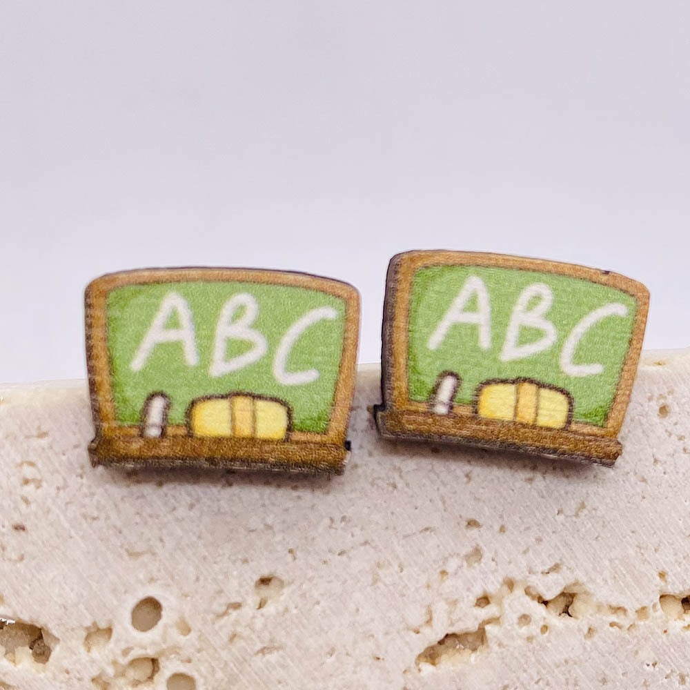 Wholesale Back to School Pencil Magnifier Book Scissors Wood Earrings