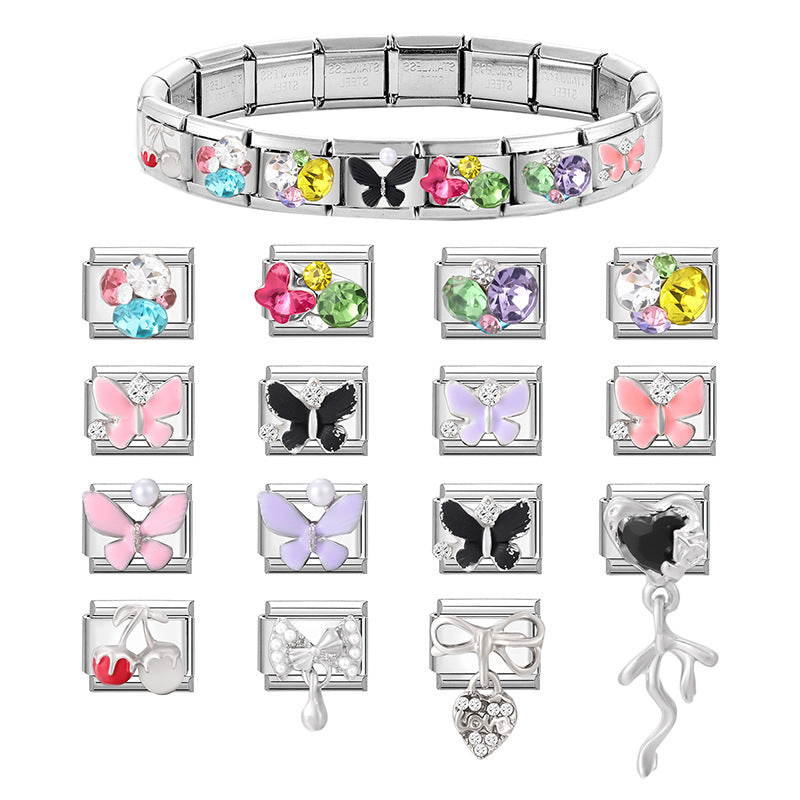 Wholesale 9mm Italian Charm Starter Bracelets DIY Butterfly Series Stainless Steel Composable Bracelet