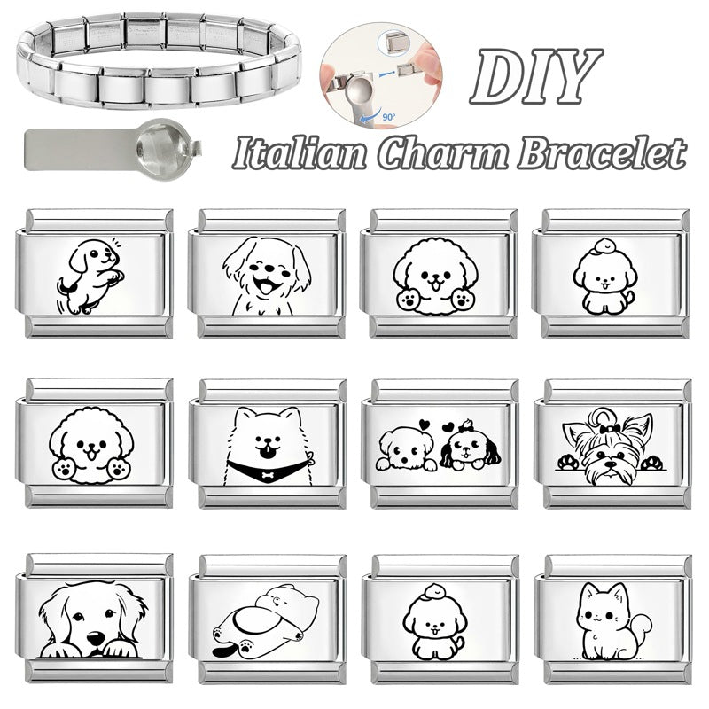Wholesale 9mm Italian Charm Starter Bracelets DIY Cute Pet Series Stainless Steel Composable Bracelet