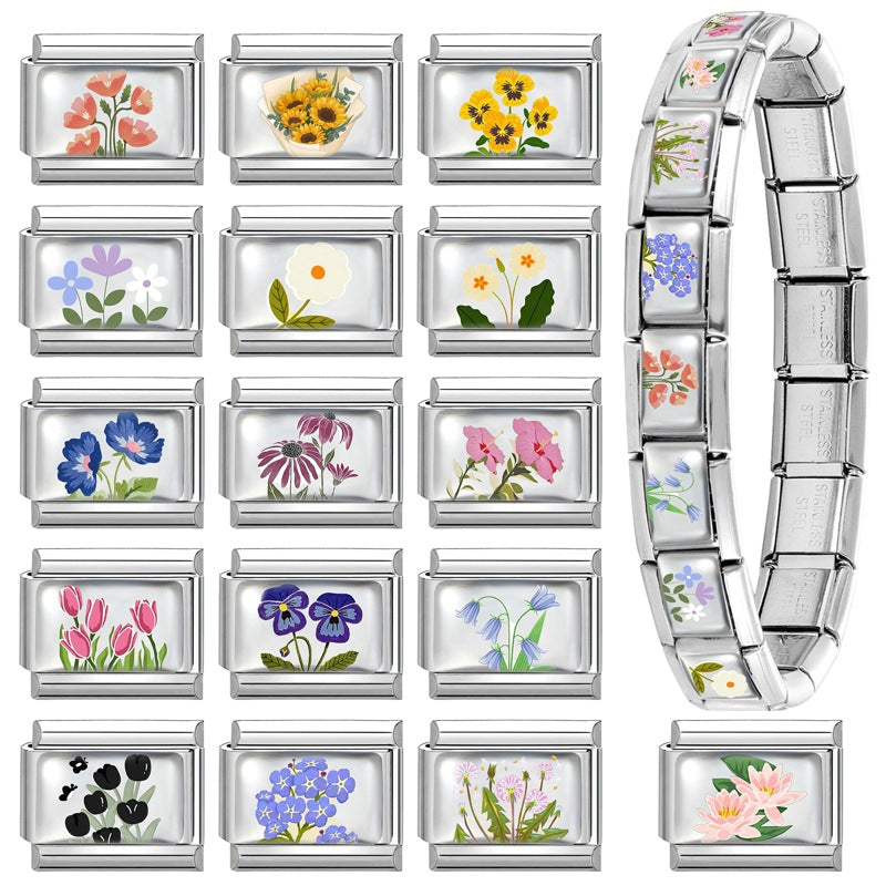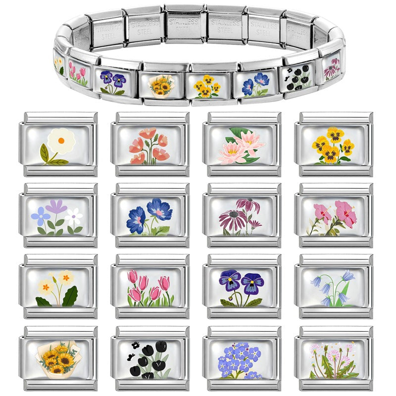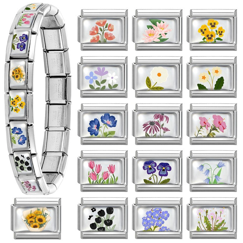 Wholesale 9mm Italian Charm Starter Bracelets DIY Flower Series Stainless Steel Composable Bracelet