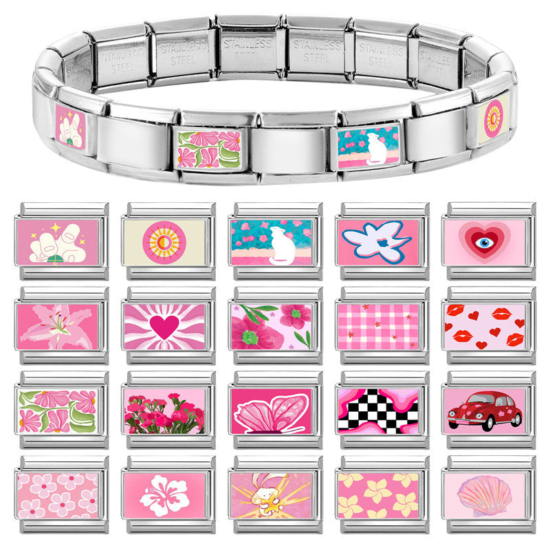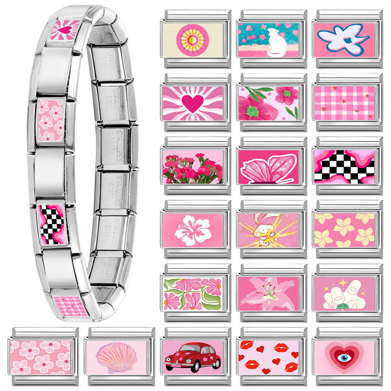Wholesale 9mm Italian Charm Starter Bracelets DIY Flower Series Stainless Steel Composable Bracelet