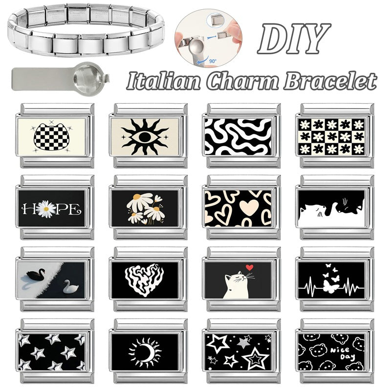 Wholesale 9mm Italian Charm Starter Bracelets DIY Heart Evil Eye Series Stainless Steel Composable Bracelet