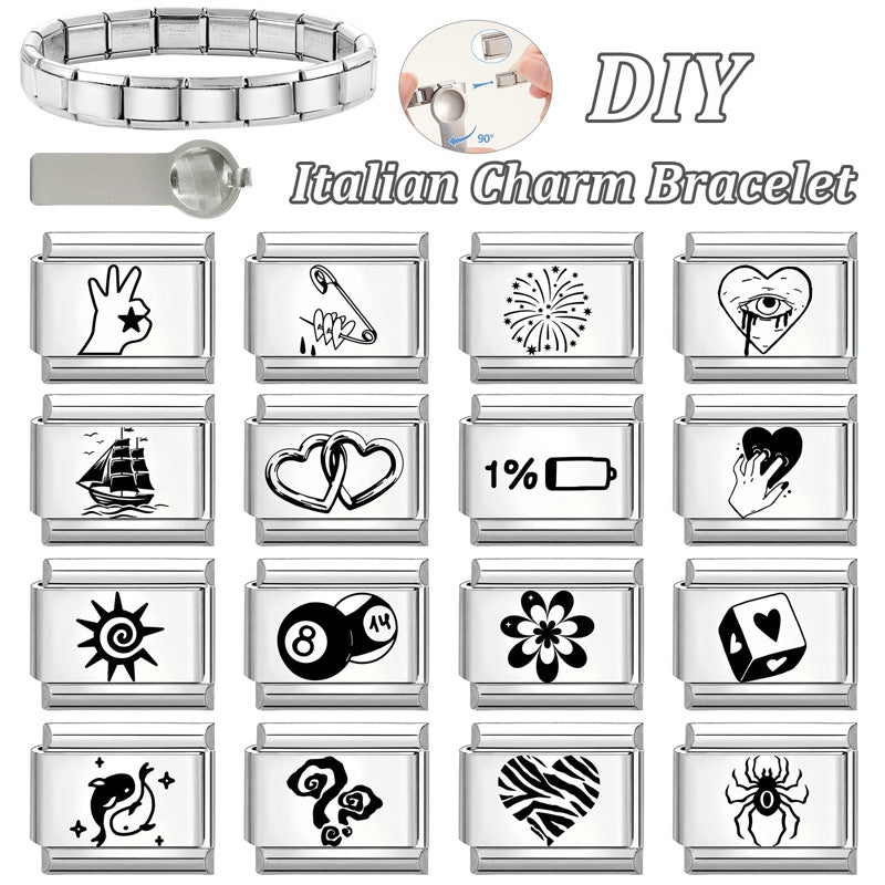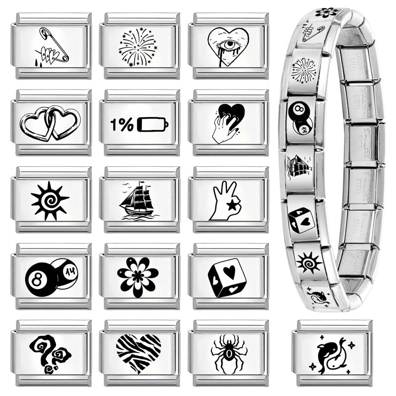 Wholesale 9mm Italian Charm Starter Bracelets DIY Heart Series Stainless Steel Composable Bracelet