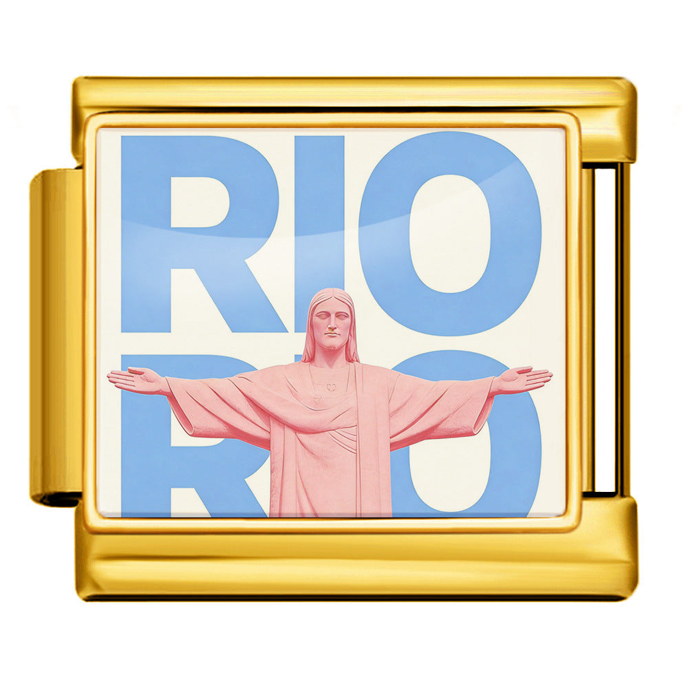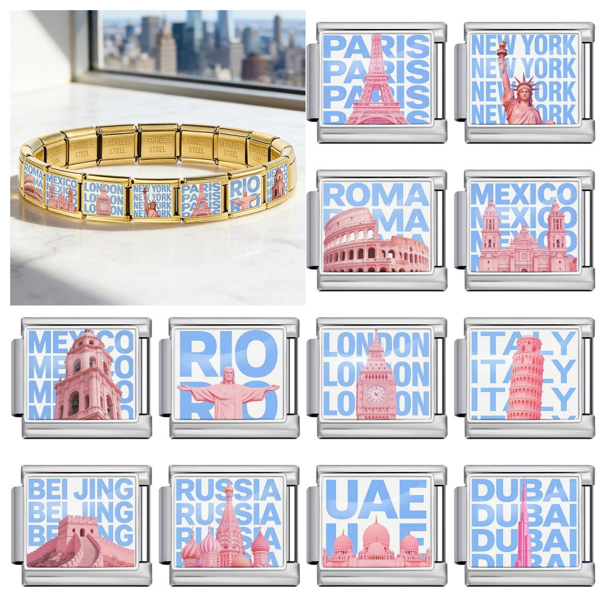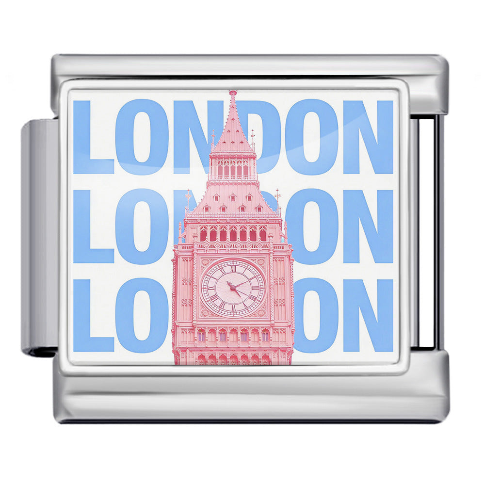 Wholesale 9mm Italian Charm Starter Bracelets DIY Landmark Pattern Stainless Steel Composable Bracelet