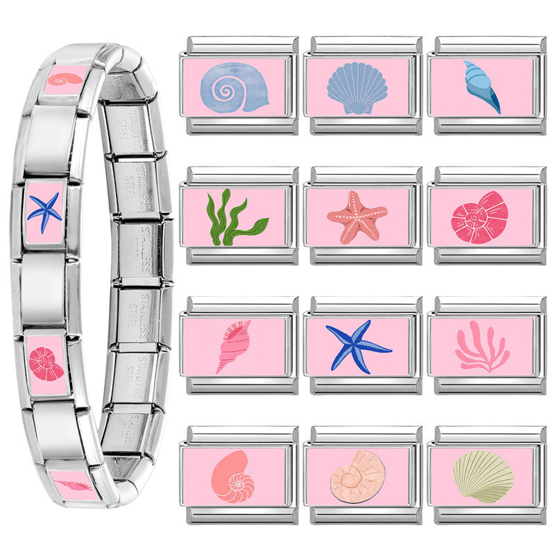 Wholesale 9mm Italian Charm Starter Bracelets DIY Marine Series Stainless Steel Composable Bracelet