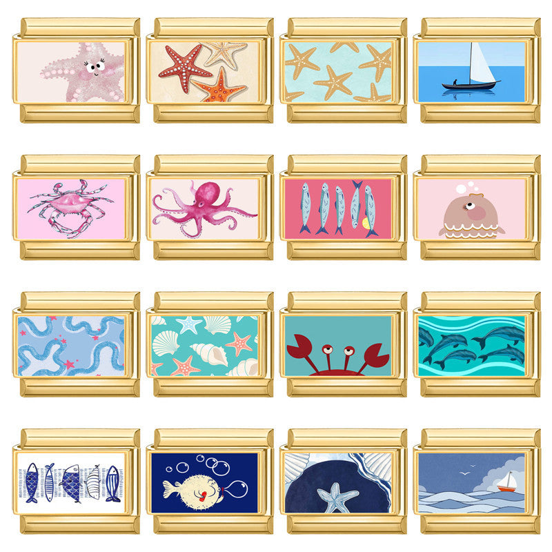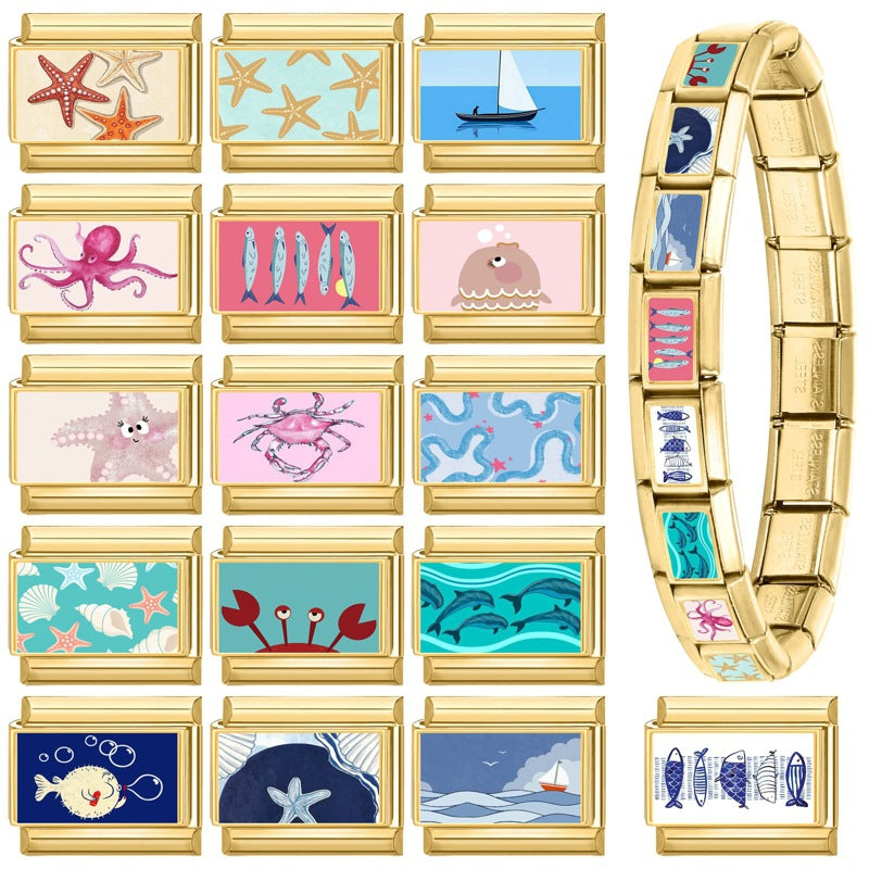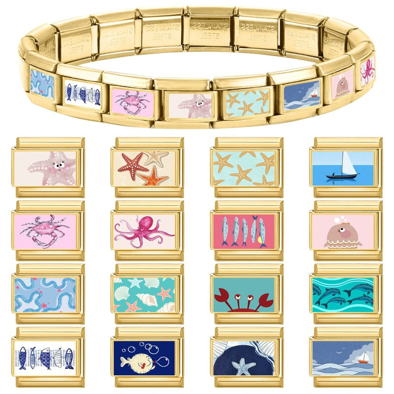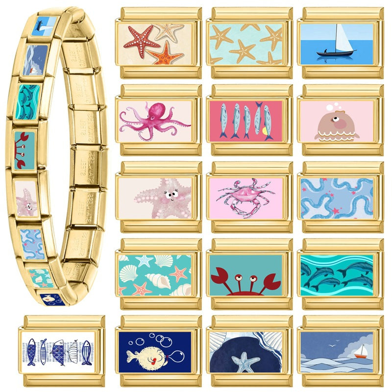 Wholesale 9mm Italian Charm Starter Bracelets DIY Marine Series Stainless Steel Composable Bracelet