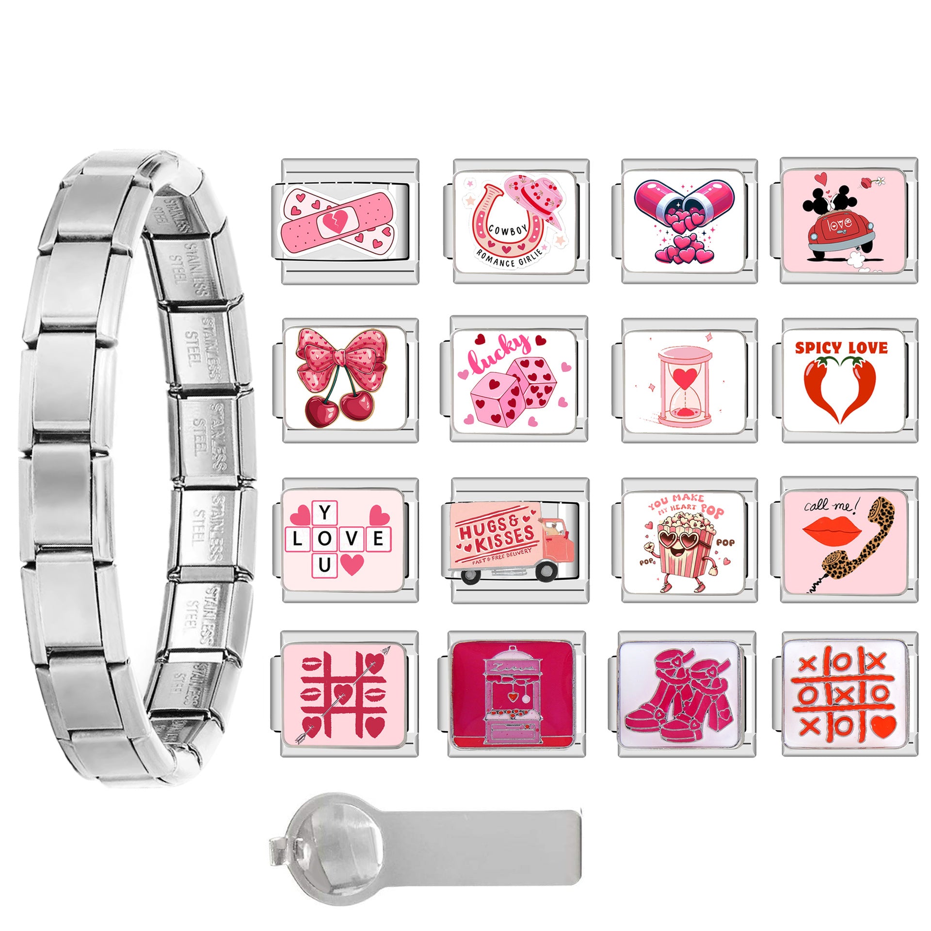 Wholesale 9mm Italian Charm Starter Bracelets DIY Pink Heart Series Stainless Steel Composable Bracelet