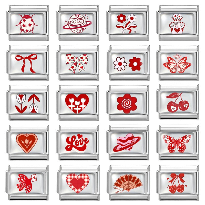 Wholesale 9mm Italian Charm Starter Bracelets DIY Red Heart Bow Stainless Steel Composable Bracelet