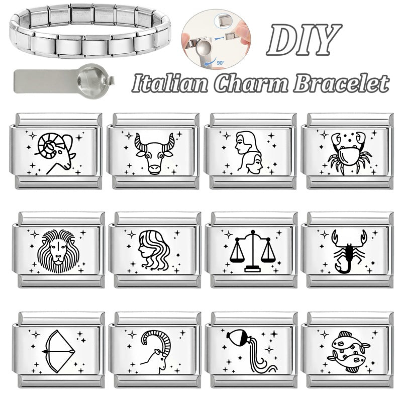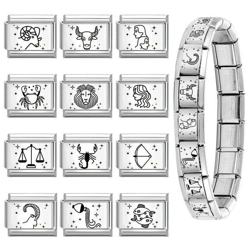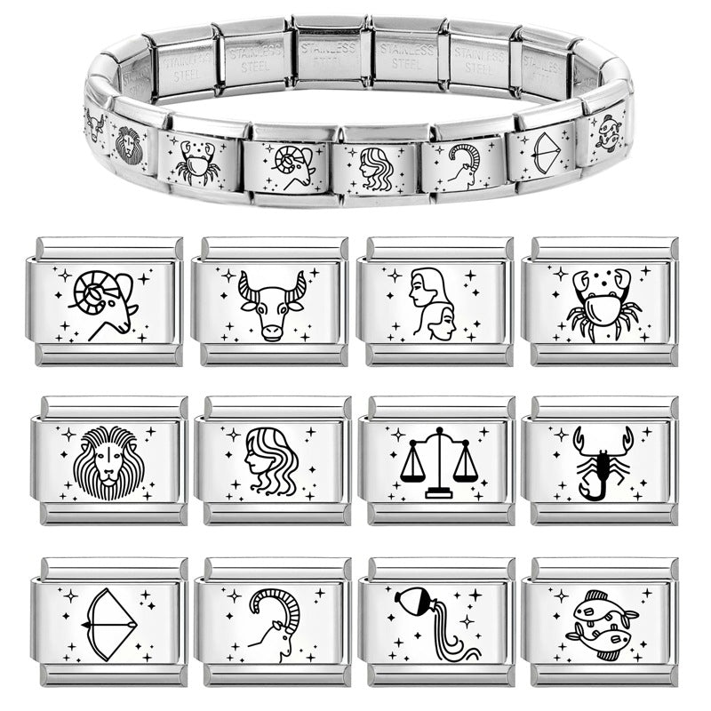 Wholesale 9mm Italian Charm Starter Bracelets DIY Zodiac Stainless Steel Composable Bracelet