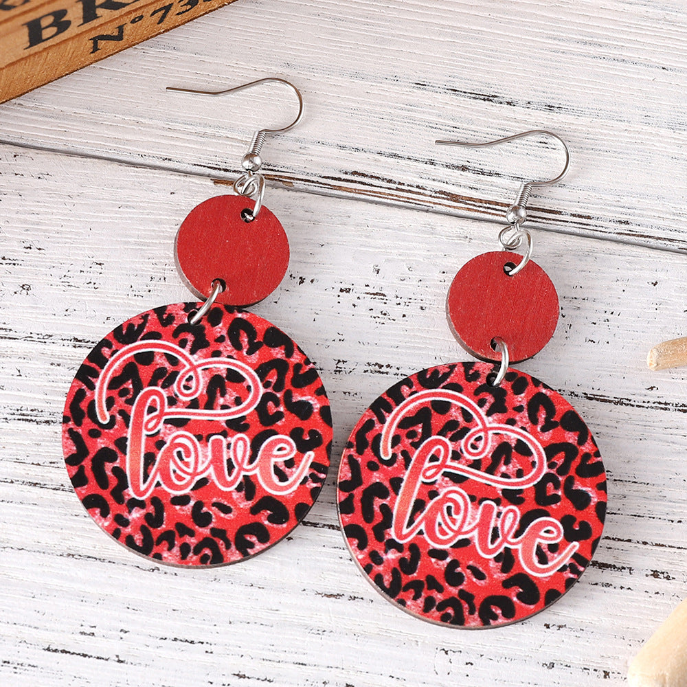 Wholesale Wooden leopard print heart-shaped circular earrings