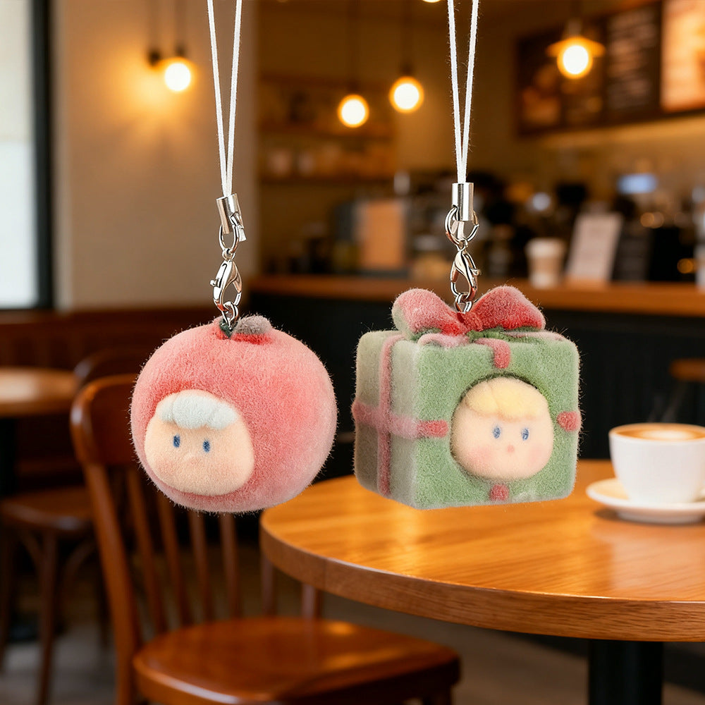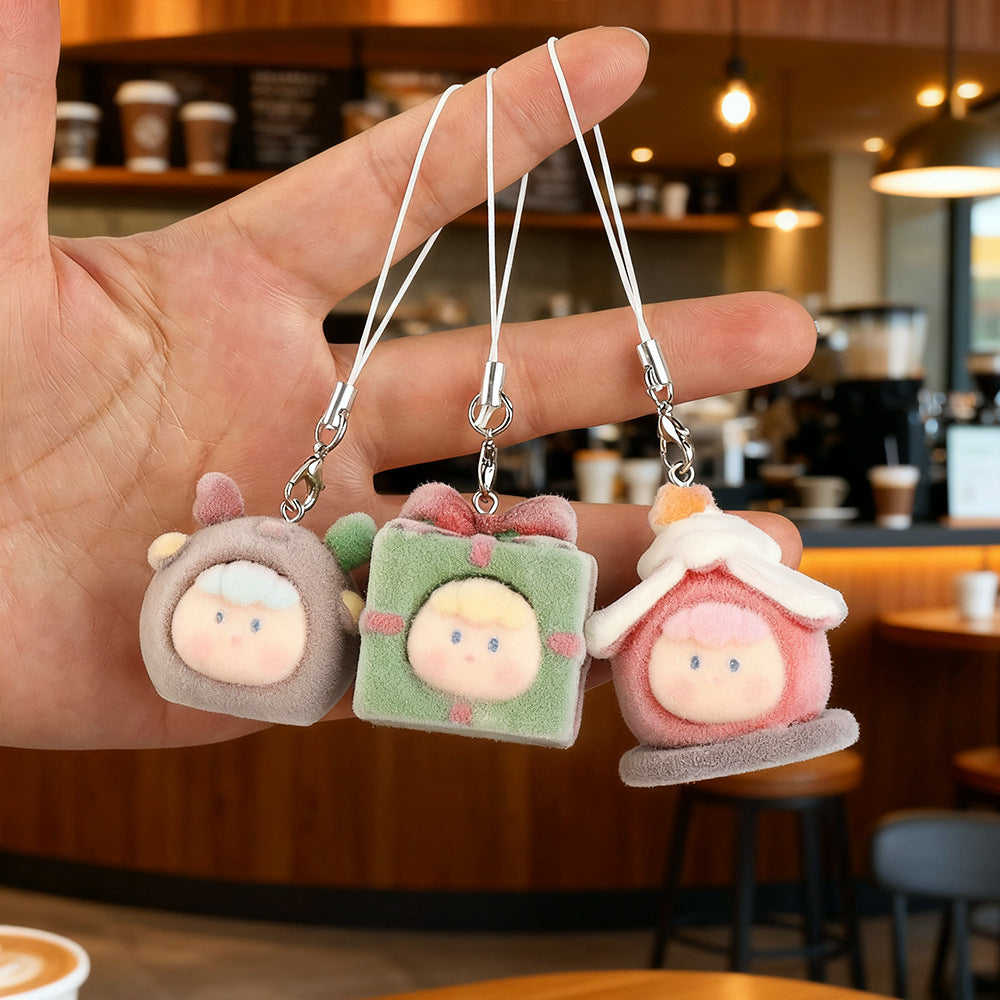 Wholesale Cute Resin Flocked Christmas Tree Keychain