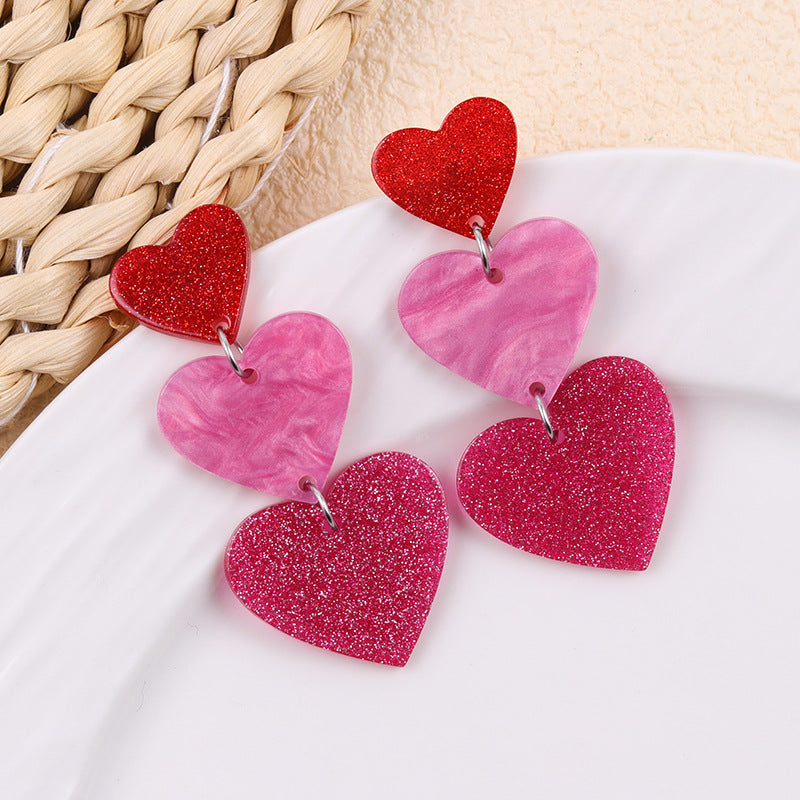 Wholesale 2pcs Acrylic Glitter Heart Earrings