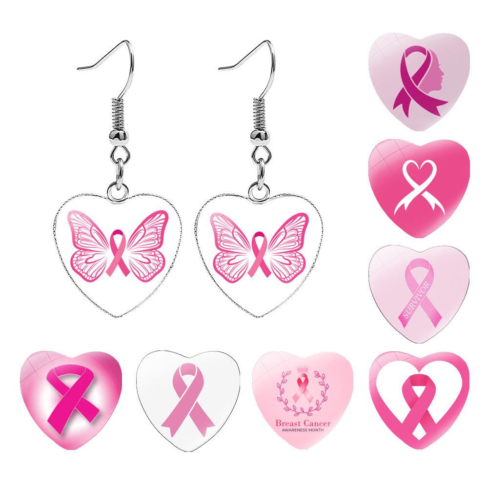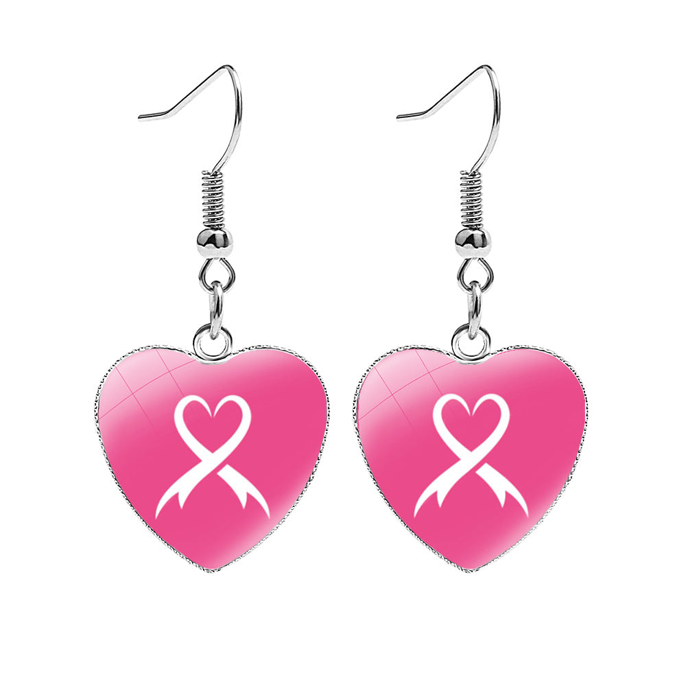 Wholesale Breast Care Ear Hook Heart-Shaped Earrings