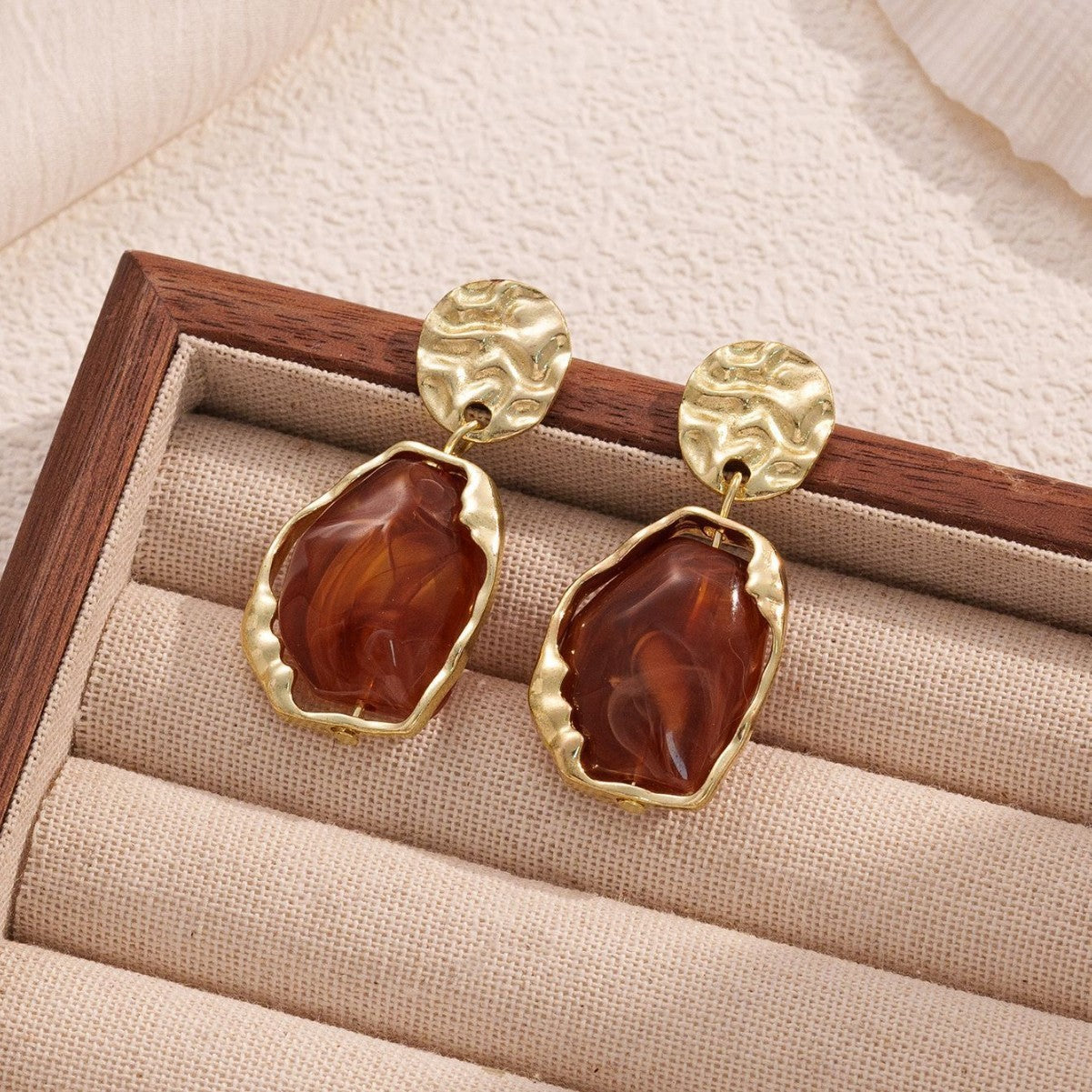 Wholesale Stainless steel gold-plated irregular natural stone earrings