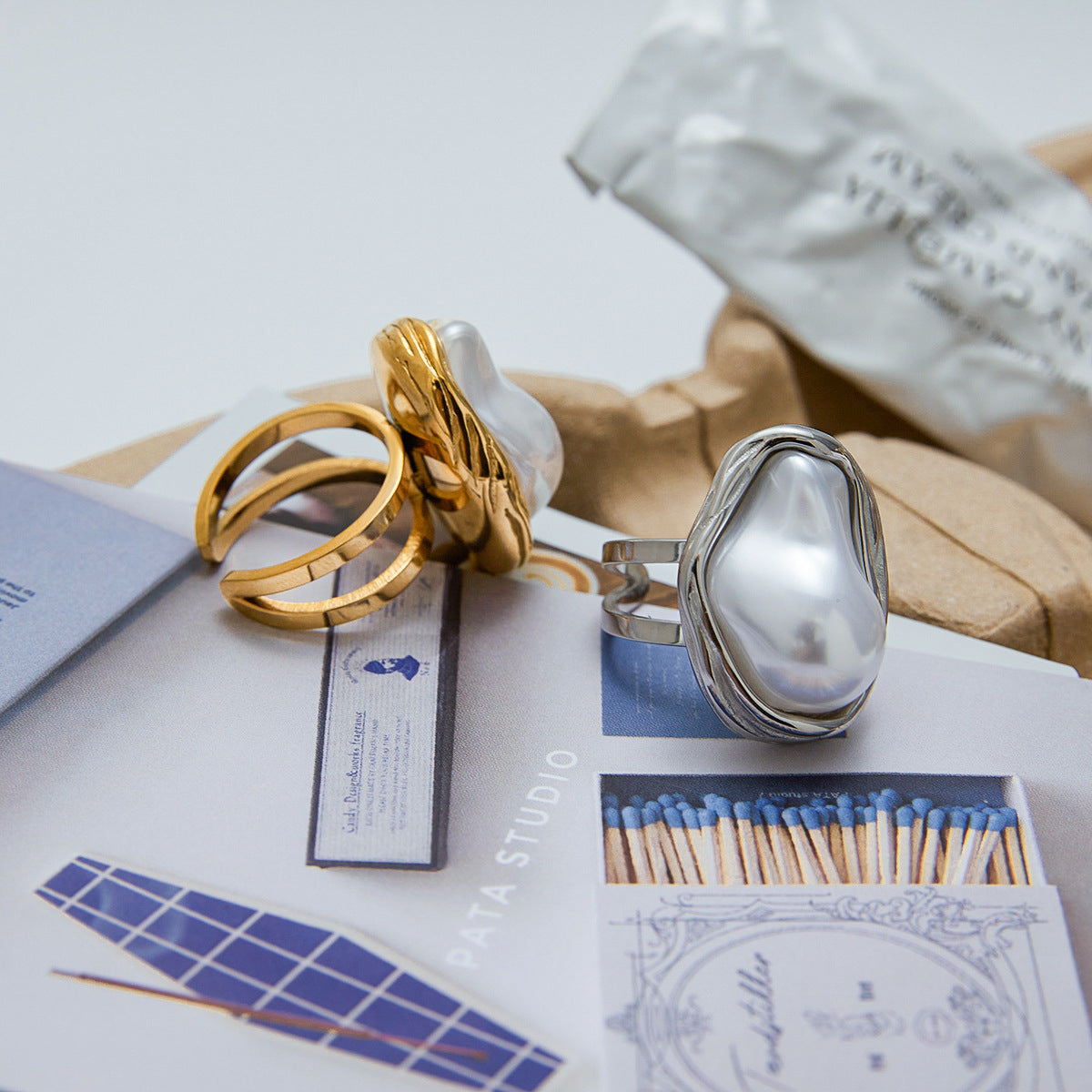 Wholesale 18k gold stainless steel baroque pearl opening ring