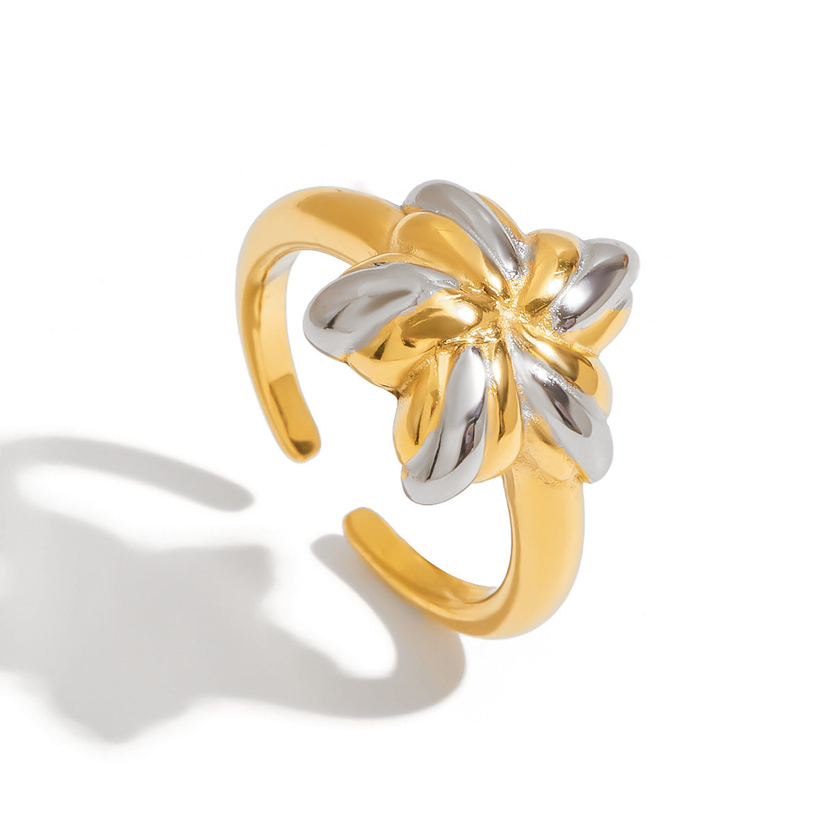 Wholesale 18K Gold Stainless Steel Gold and Silver Color Matching Five-Pointed Star Open Ring