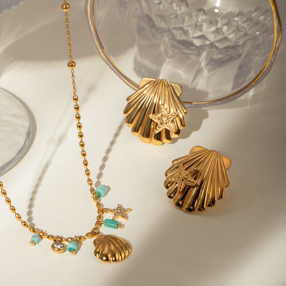 Wholesale 18k gold stainless steel shell sticky starfish earrings jewelry