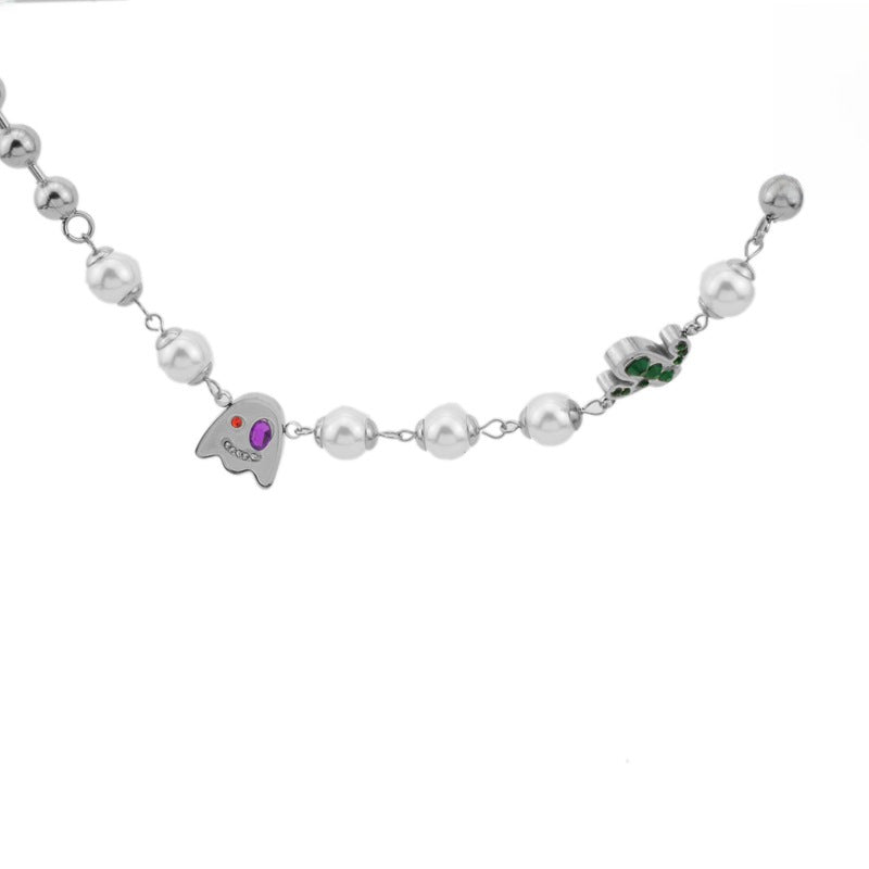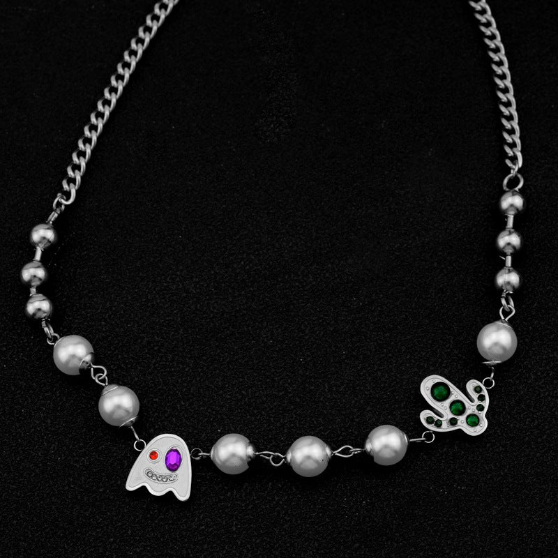 Wholesale Titanium Steel Cactus stitching necklace creative funny ghost pearl necklace
