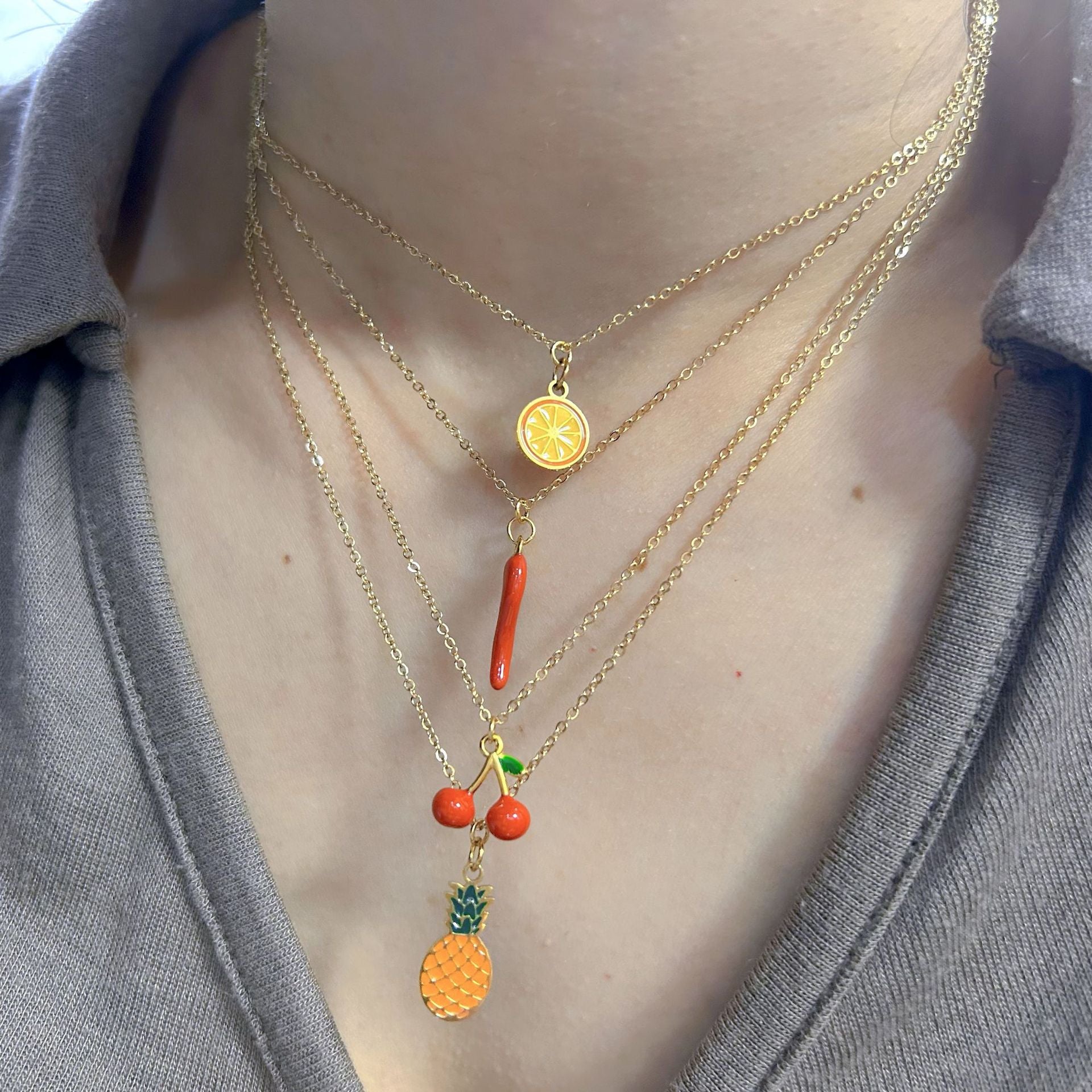 Wholesale Stainless steel cute fruit and vegetable necklace