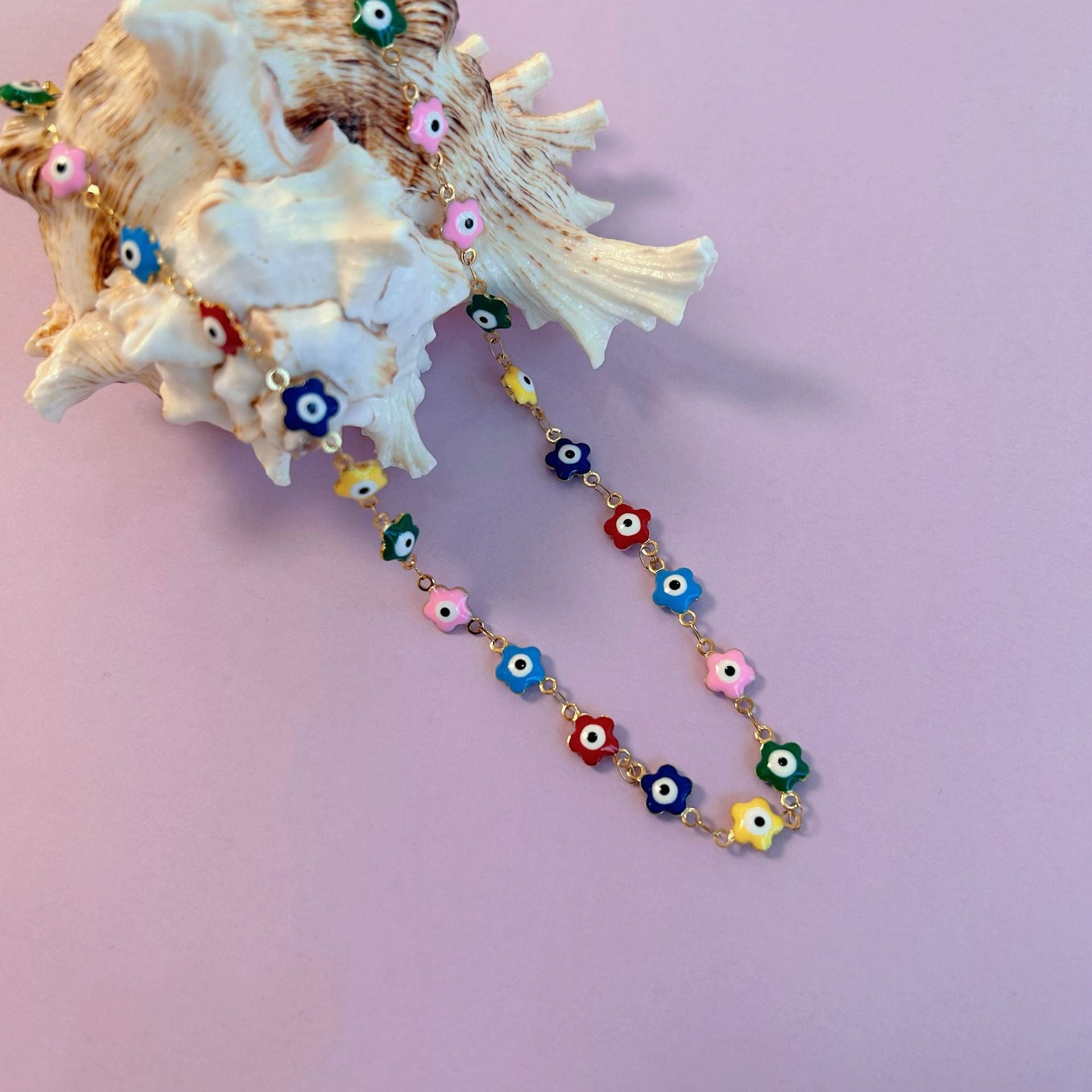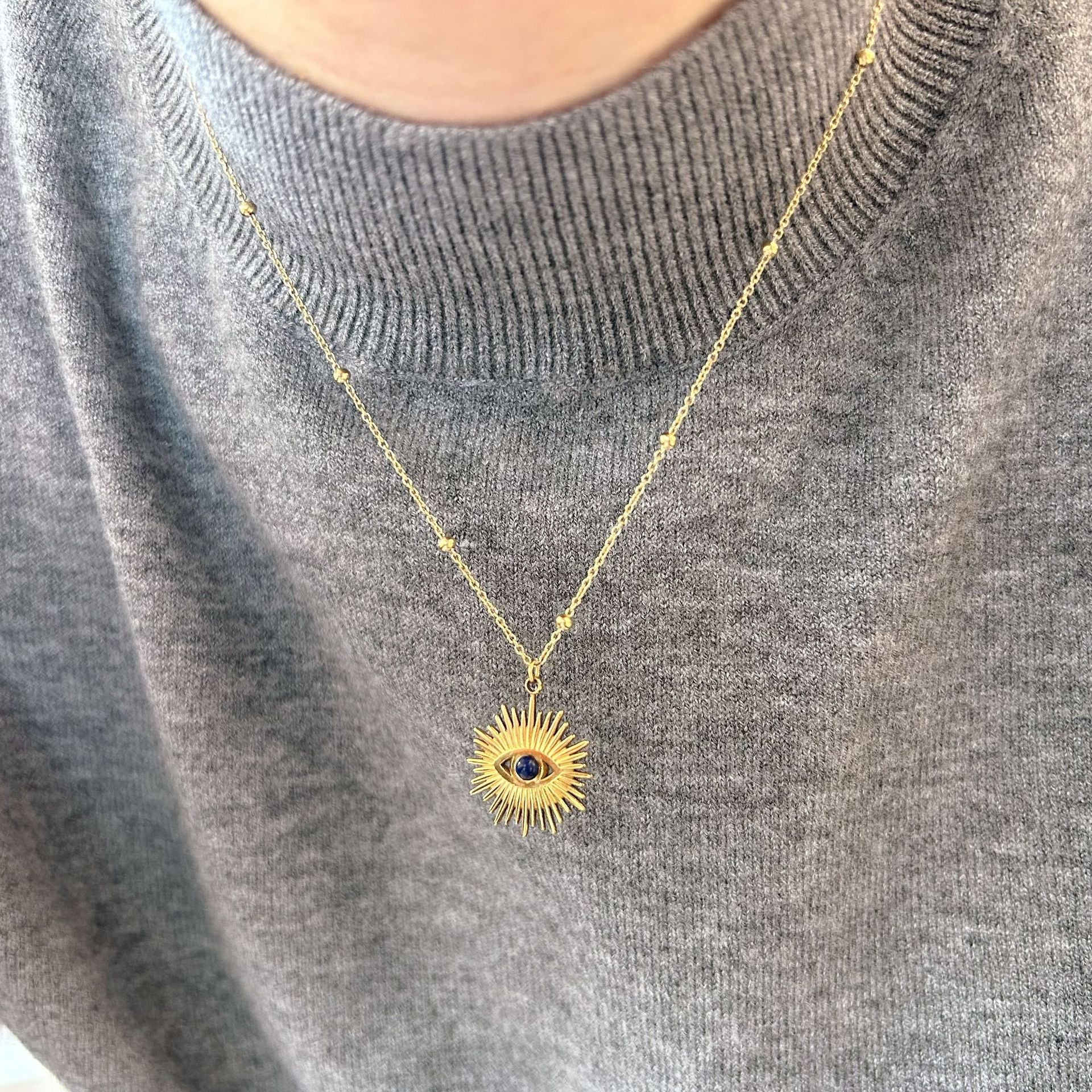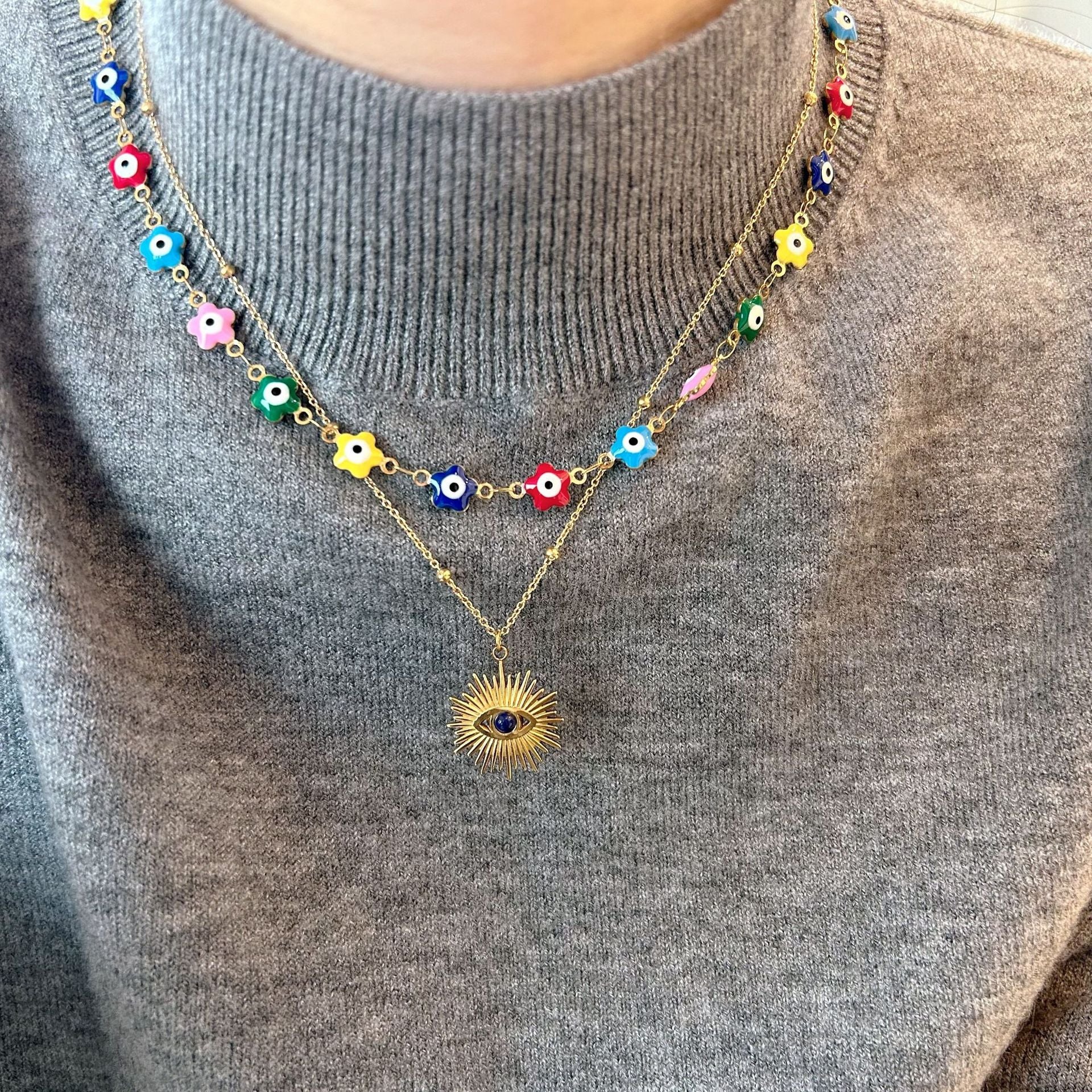 Wholesale Demon Eye Beaded Necklace Natural Stone Eye Pendant Stainless Steel Chain