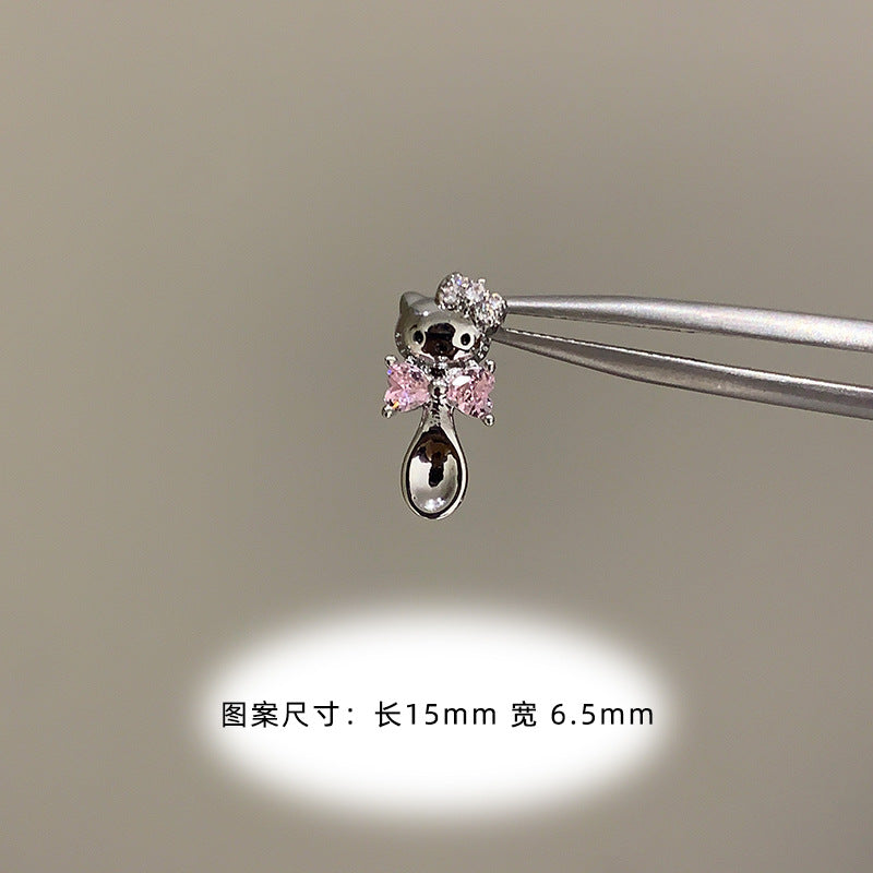 Wholesale Titanium Steel Full Diamond Cat Earrings