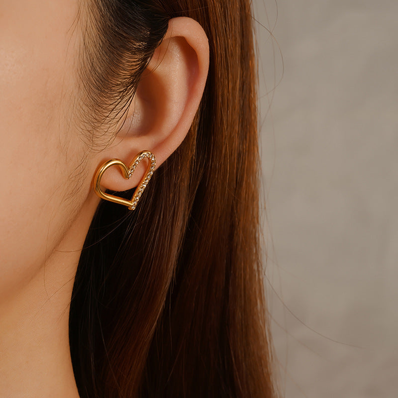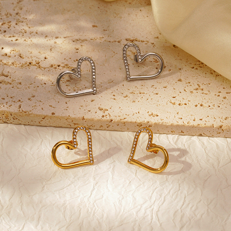 Wholesale Stainless steel Heart-Shaped Diamond Stud Earrings