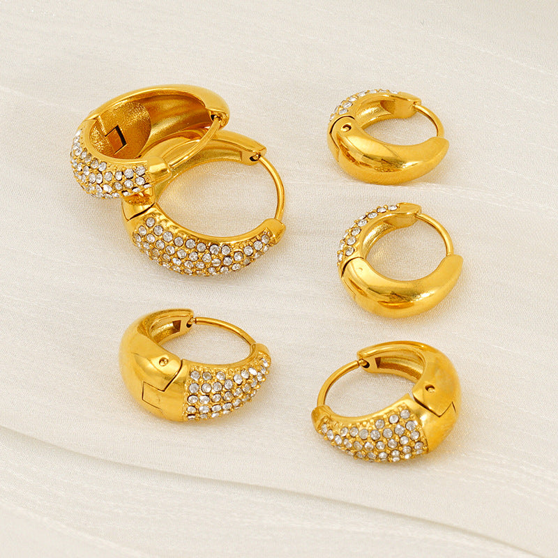 Wholesale Light Luxury Ear Buckle Plating 18K Gold Inlaid Zircon Geometric All-match Titanium Steel Earrings