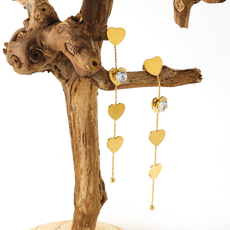Wholesale Long Tassel Earrings Stainless Steel 18K Love Zircon Earrings