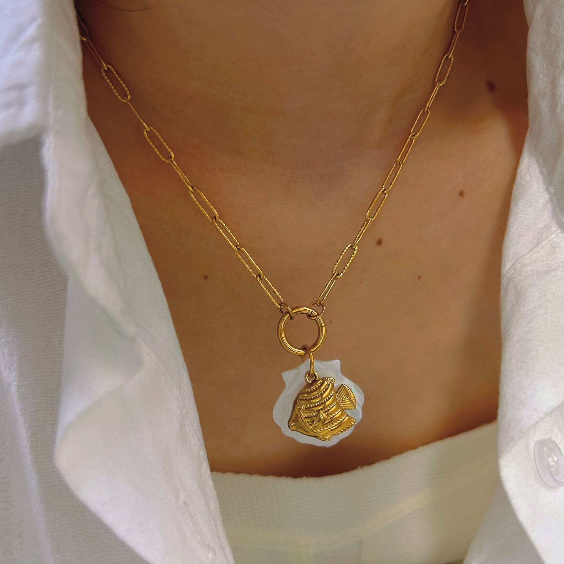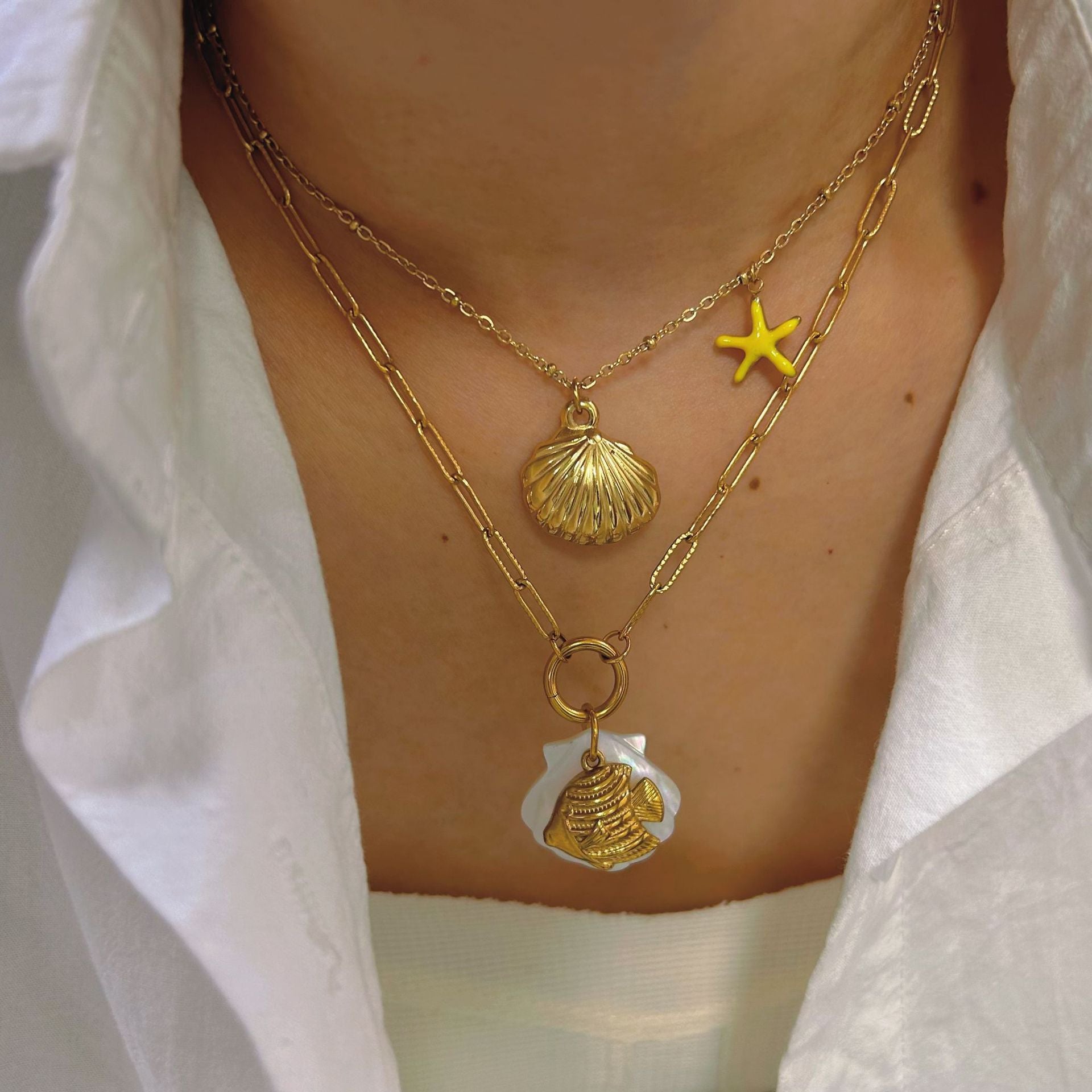 Wholesale marine elements series personality simple starfish turtle color shell pendant stainless steel necklace