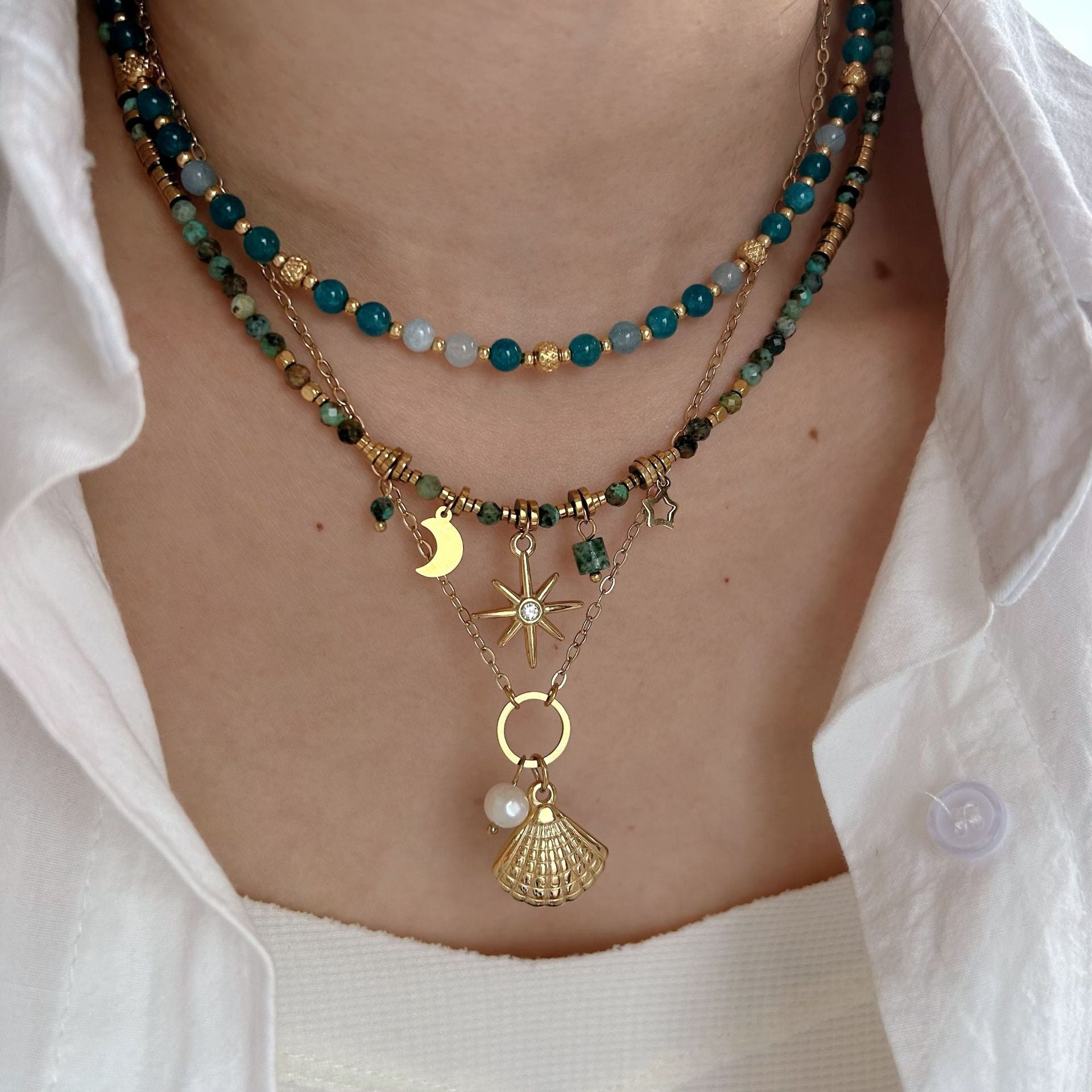 Wholesale natural stone necklace shell mans star pendant stainless steel shell necklace