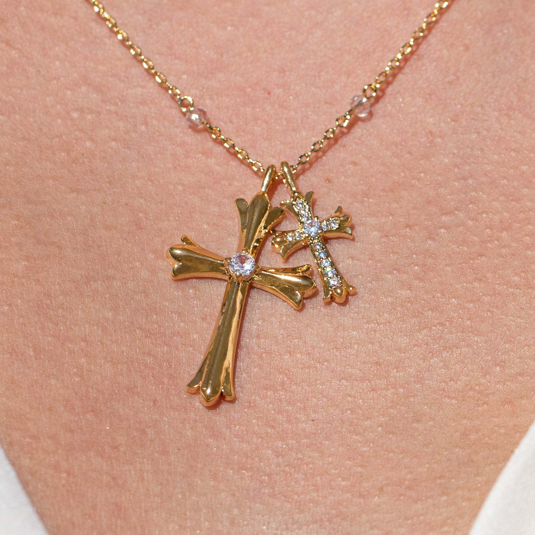 Wholesale Stainless Steel 18K Gold Diamond Cross Necklace