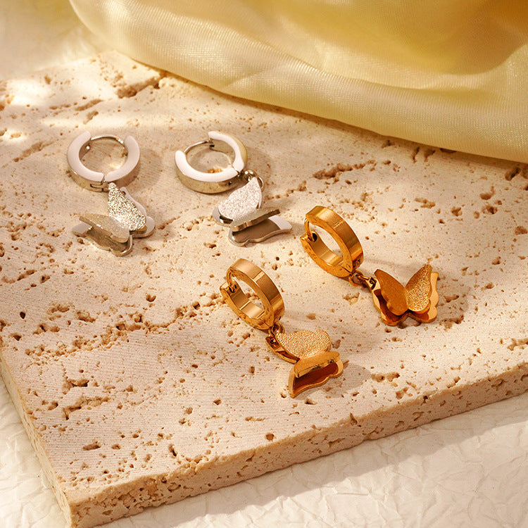 - 4*9 sand-blasted butterfly earrings steel color ms-692a