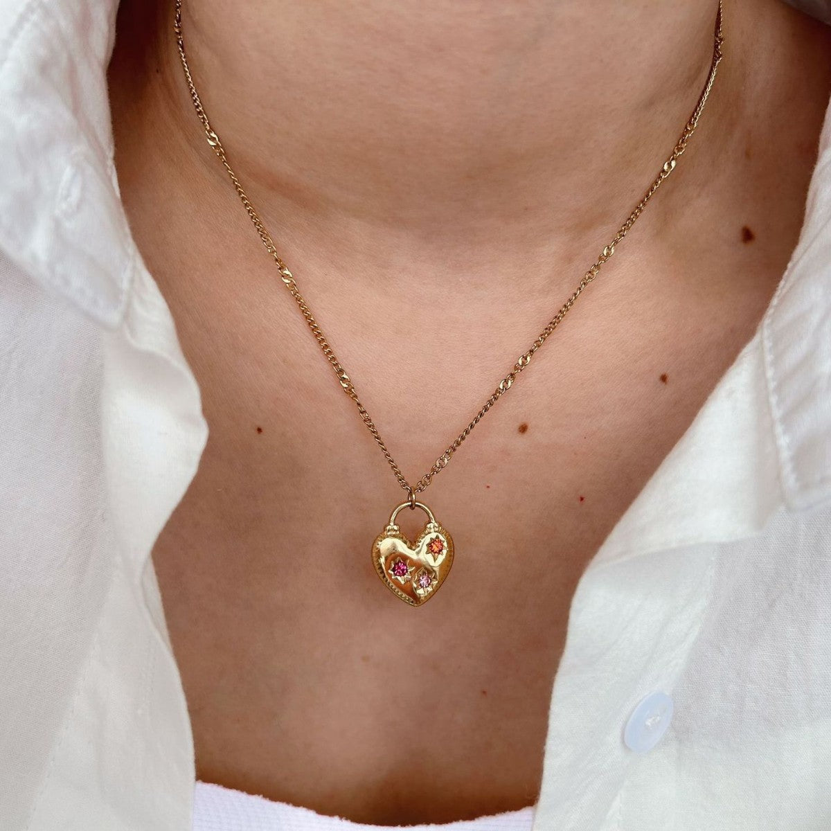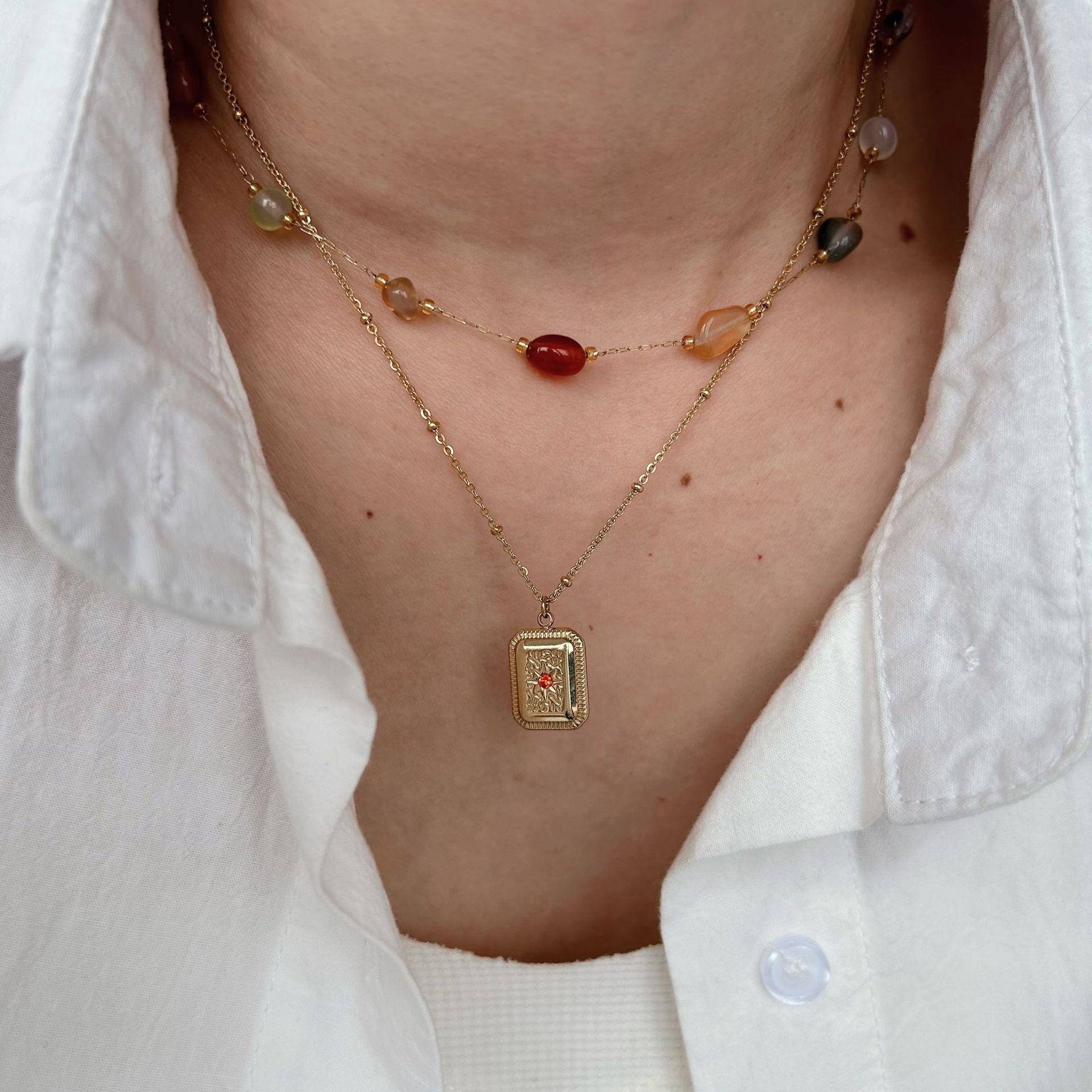 Wholesale Stainless Steel Powder Diamond Love Necklace Natural Stone Beaded Jewelry