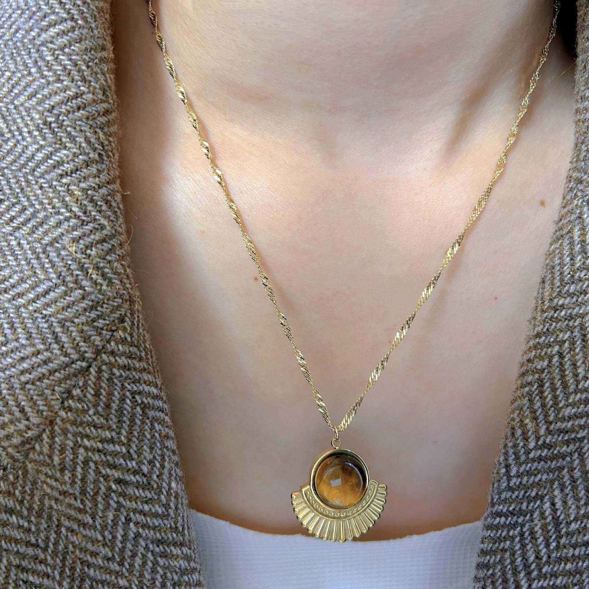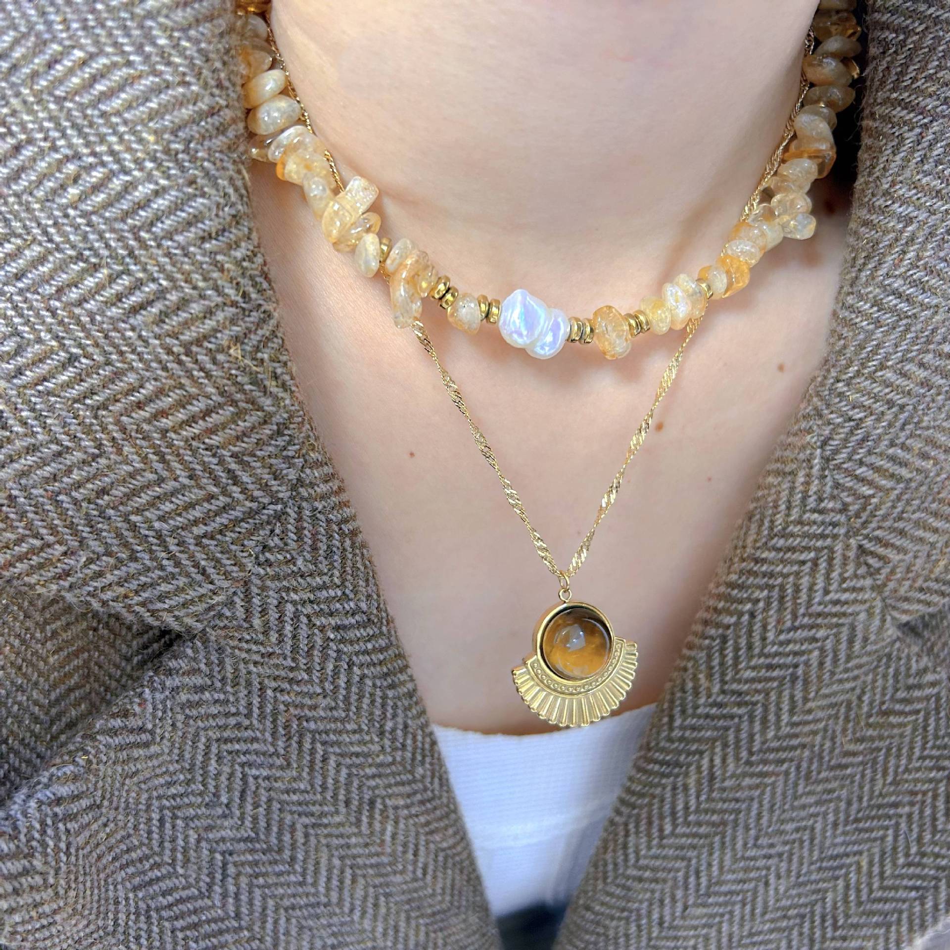 Wholesale Stainless Steel Temperament Simple Irregular Natural Stone Beaded Necklace