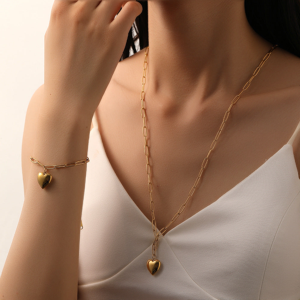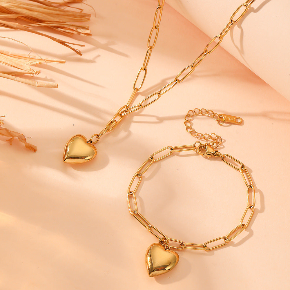 Wholesale Heart Bracelets Titanium Steel Necklace Jewelry Set